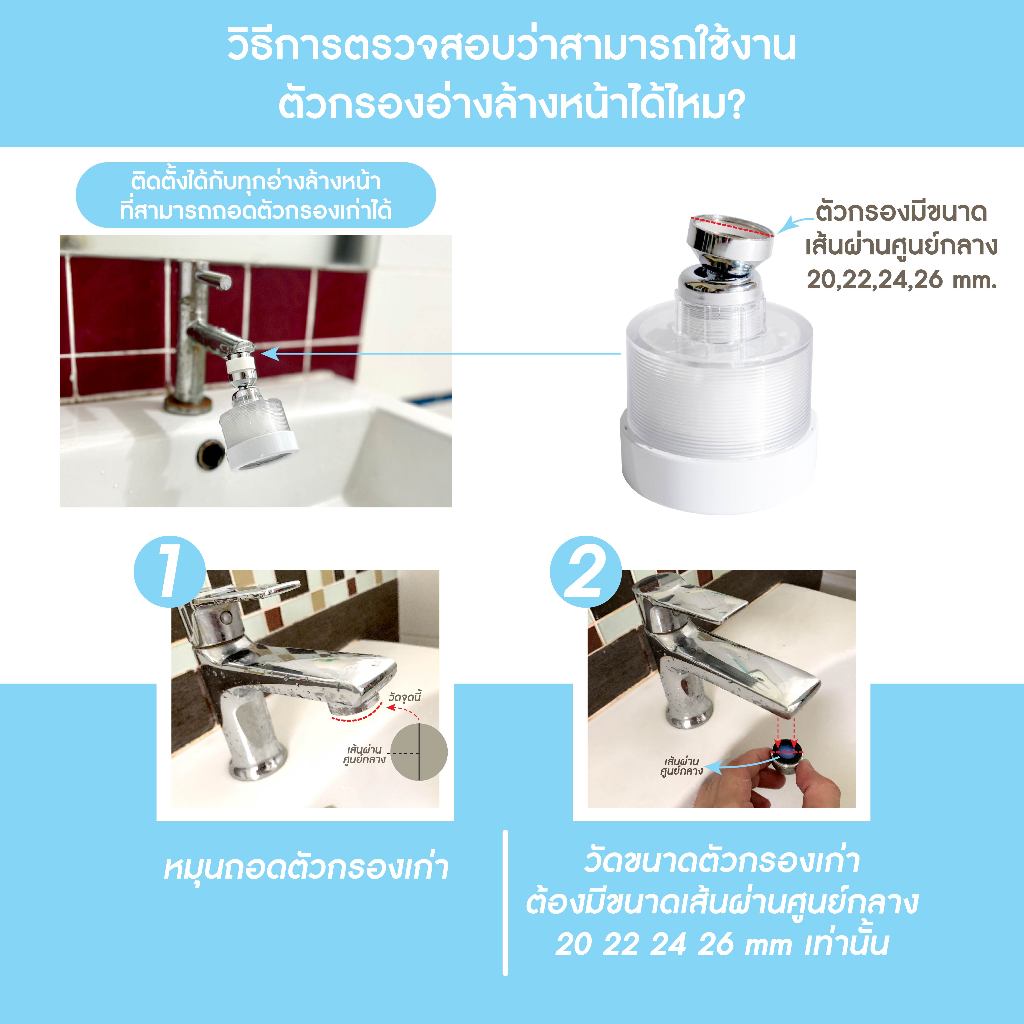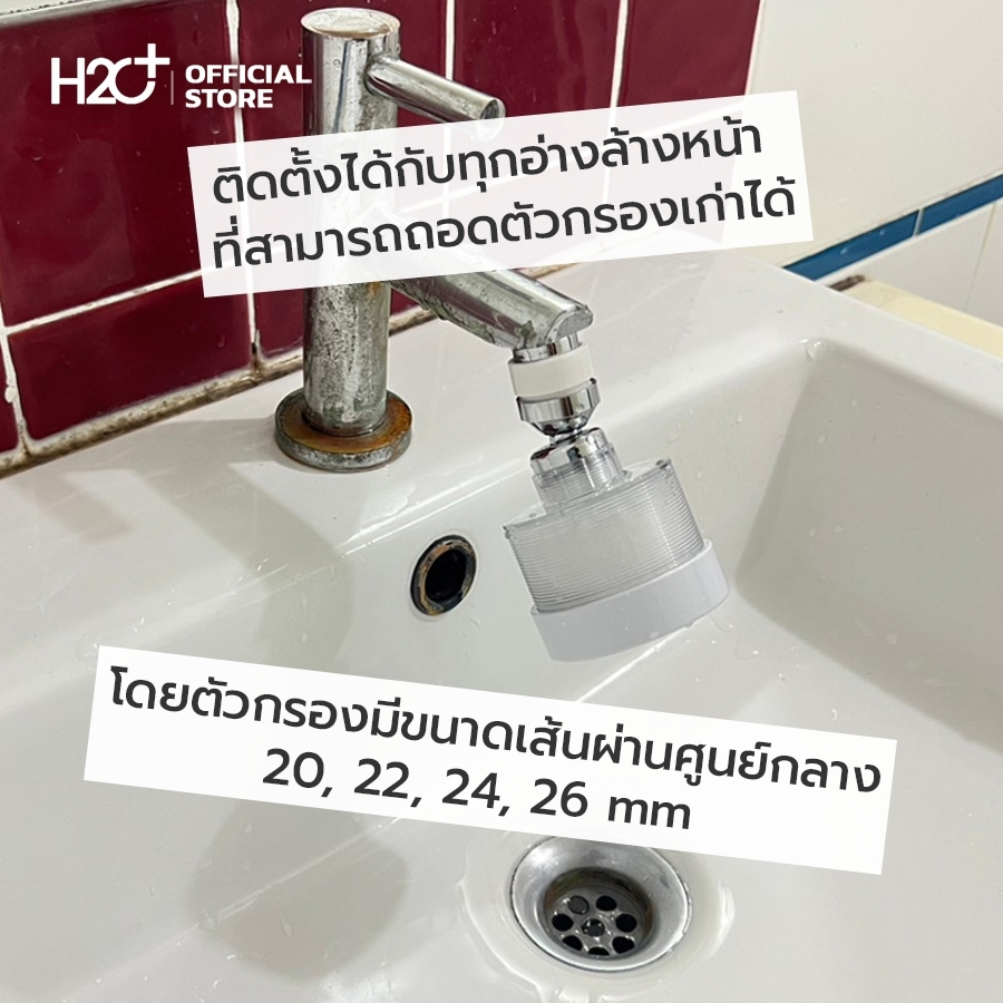 H2O Plus Ultimate Faucet Filter ที่กรองน้ำอ่างล้างหน้าสำหรับผิวแพ้ง่าย สไตล์โมเดิร์น เปลี่ยนไส้กรองได้