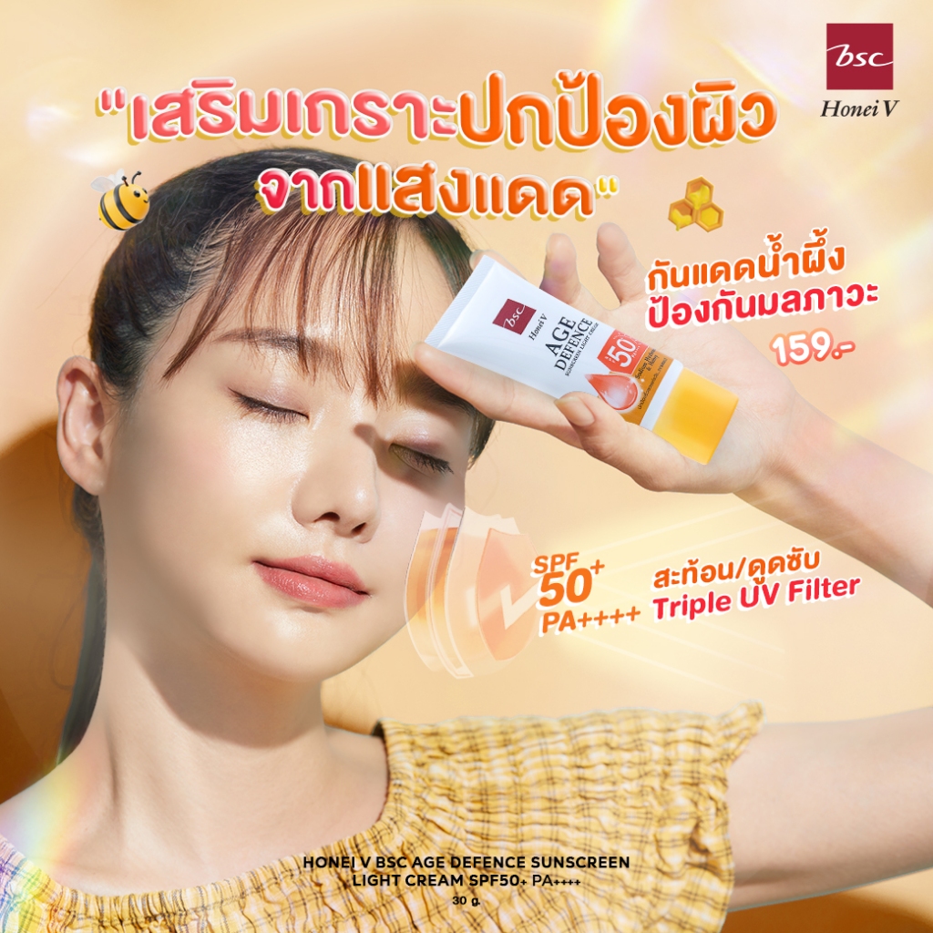 [CLEARANCE] [ยกกล่อง 6 ซอง] HONEI V BSC ครีมกันแดด แบบซอง AGE DEFENCE 8g. ผสมน้ำผึ้ง & ไฮยา บางเบา ซึมไว