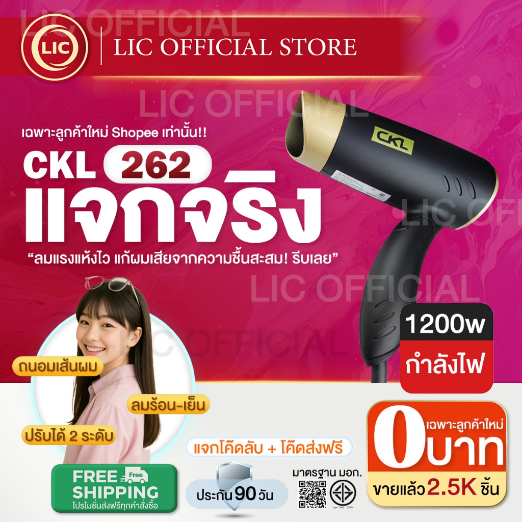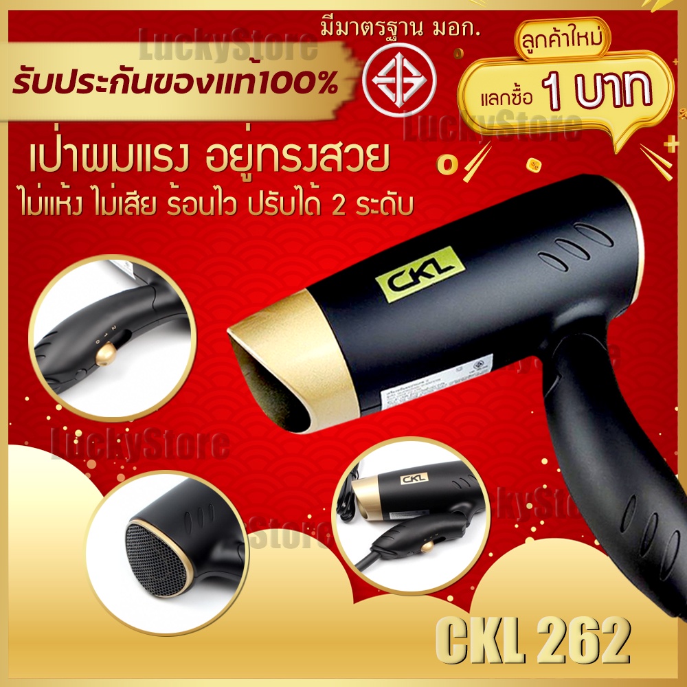 LIC 🔥 ลูกค้าใหม่ 0 บาท 🔥 ไดร์เป่าผม เครื่องเป่าผม CKL 262 เป่าผม ที่เป่าผม ไดร์เป่าผมพกพา พกพาง่าย ลมแรงมาก พับเก็บได้