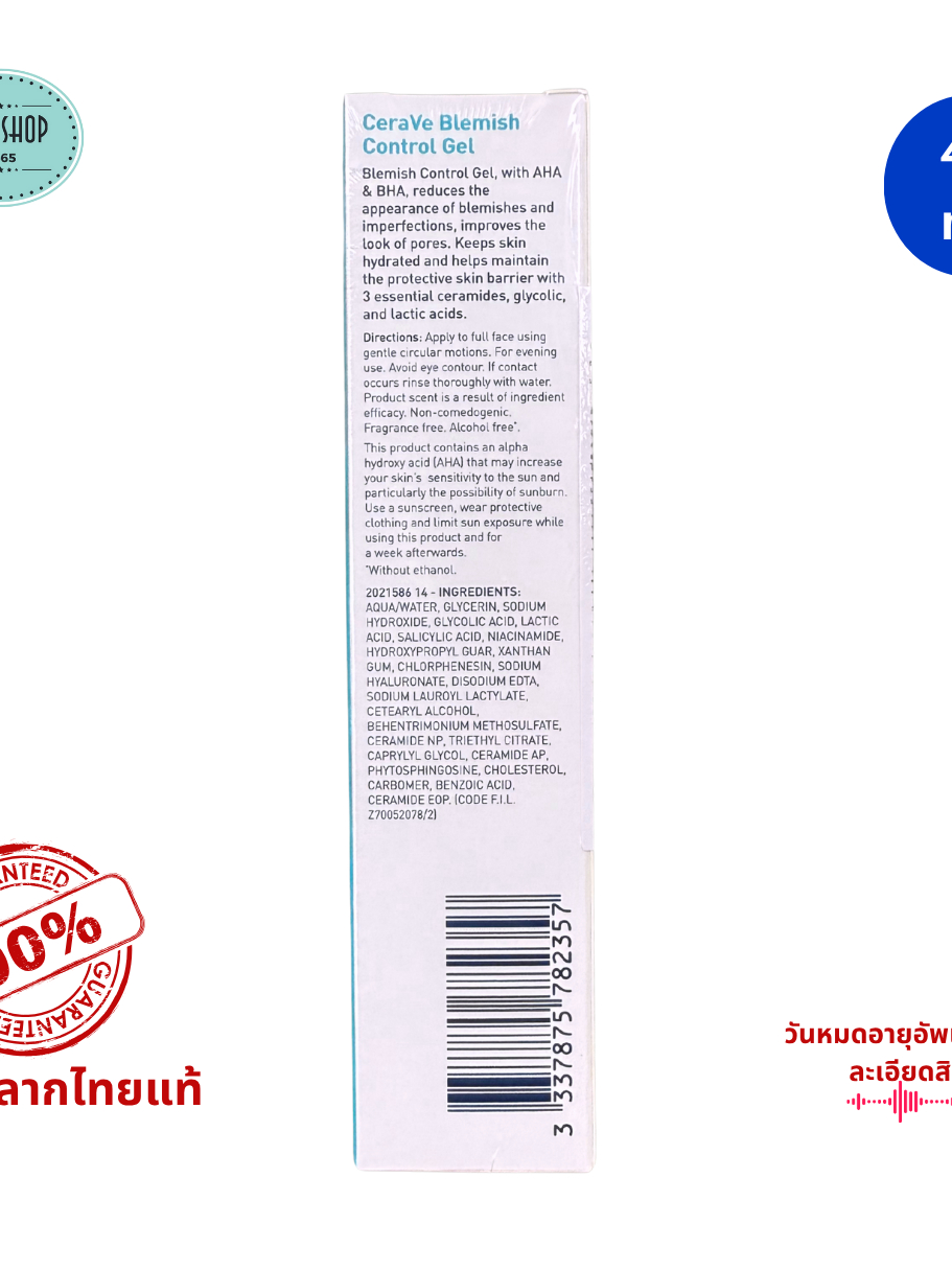 เซราวี CERAVE BLEMISH CONTROL GEL บำรุงผิวหน้าสำหรับผิวเป็นสิวง่าย 40 มล.