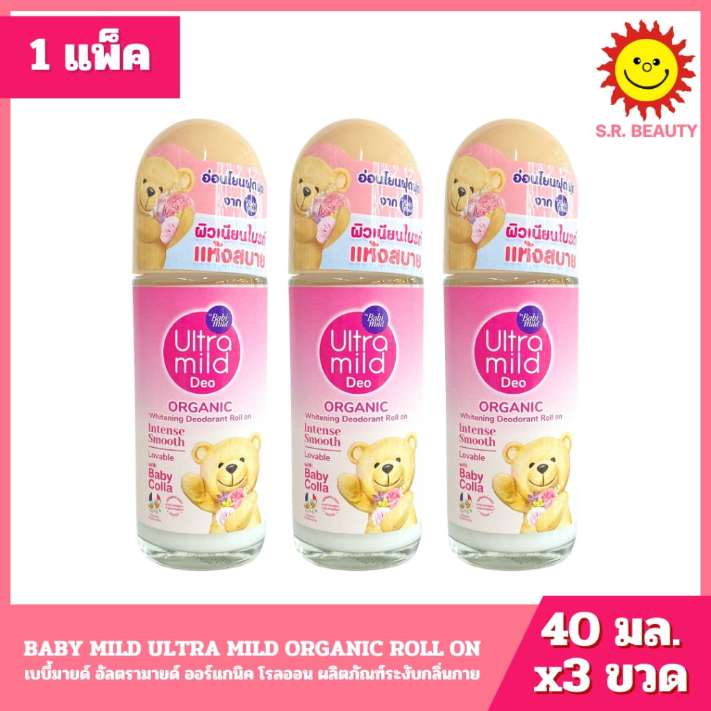 [1 แพ็ค ]Babi Milld Ultra Mild เบบี้มายด์ อัลตรามายด์ ออร์แกนิค โรลออน 40 ml.x 3 ขวด ทุกสูตร