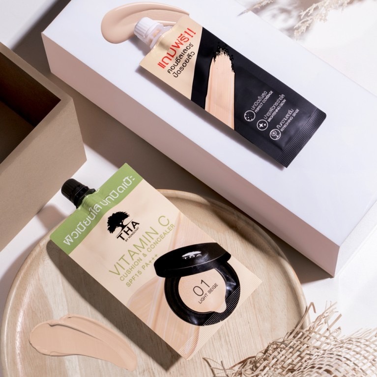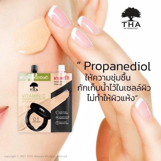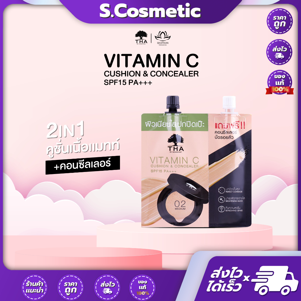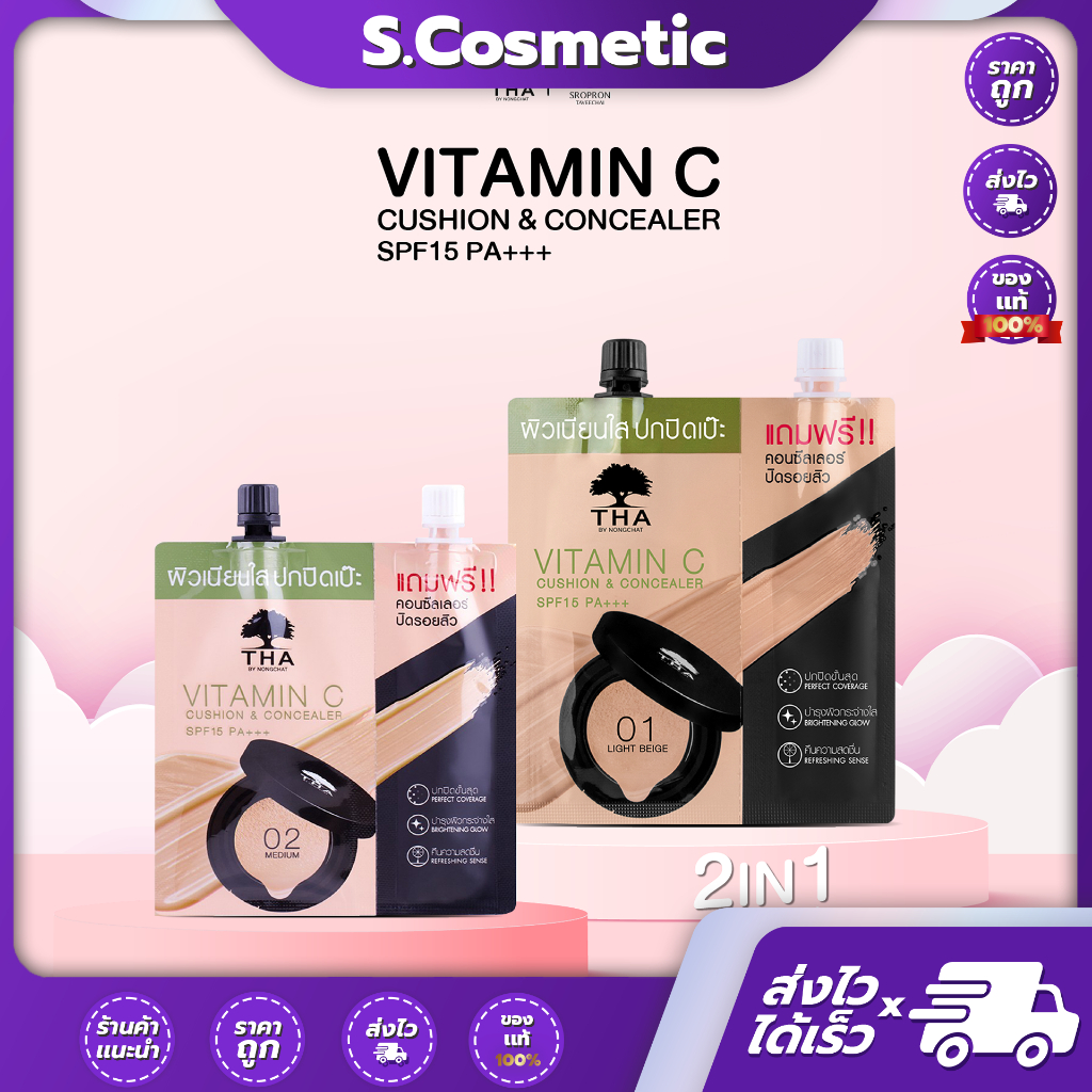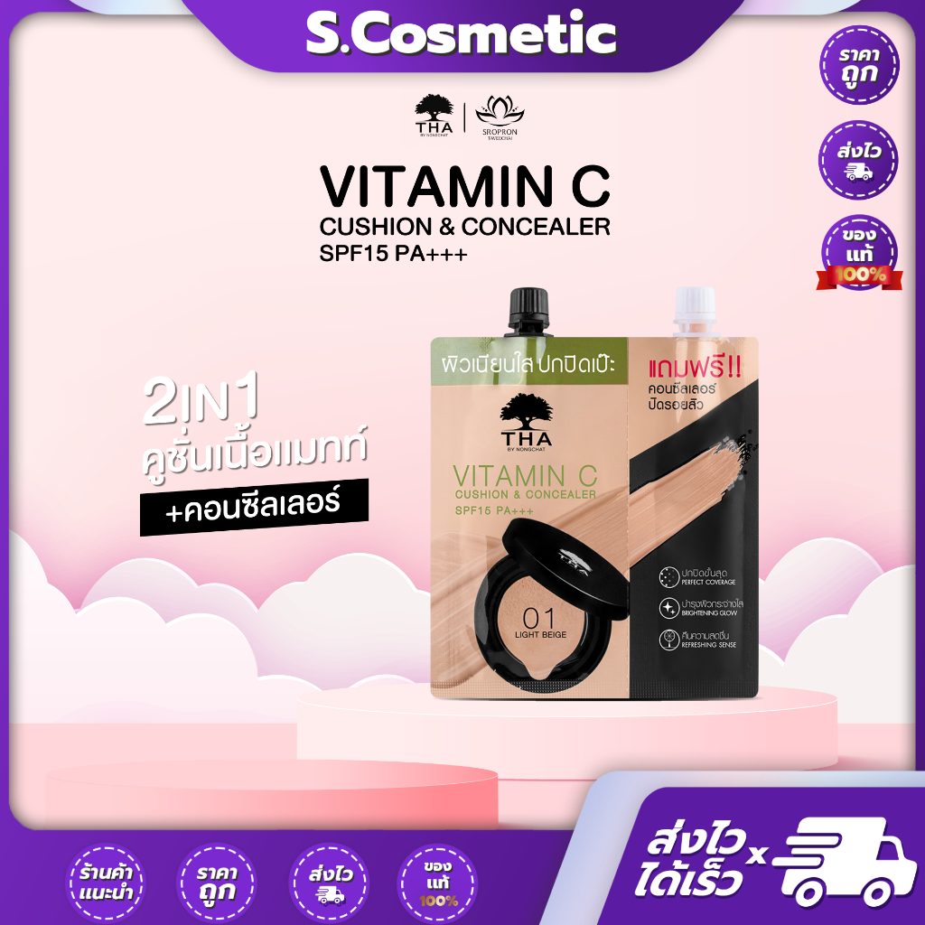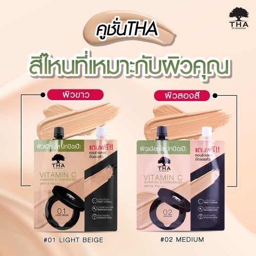 [ยกกล่อง] วิตามินซีคูชั่นแอนด์คอนซีลเลอร์ เอสพีเอฟ15 พีเอ+++ THA By Nongchat ##01 Light beige ##02 Medium