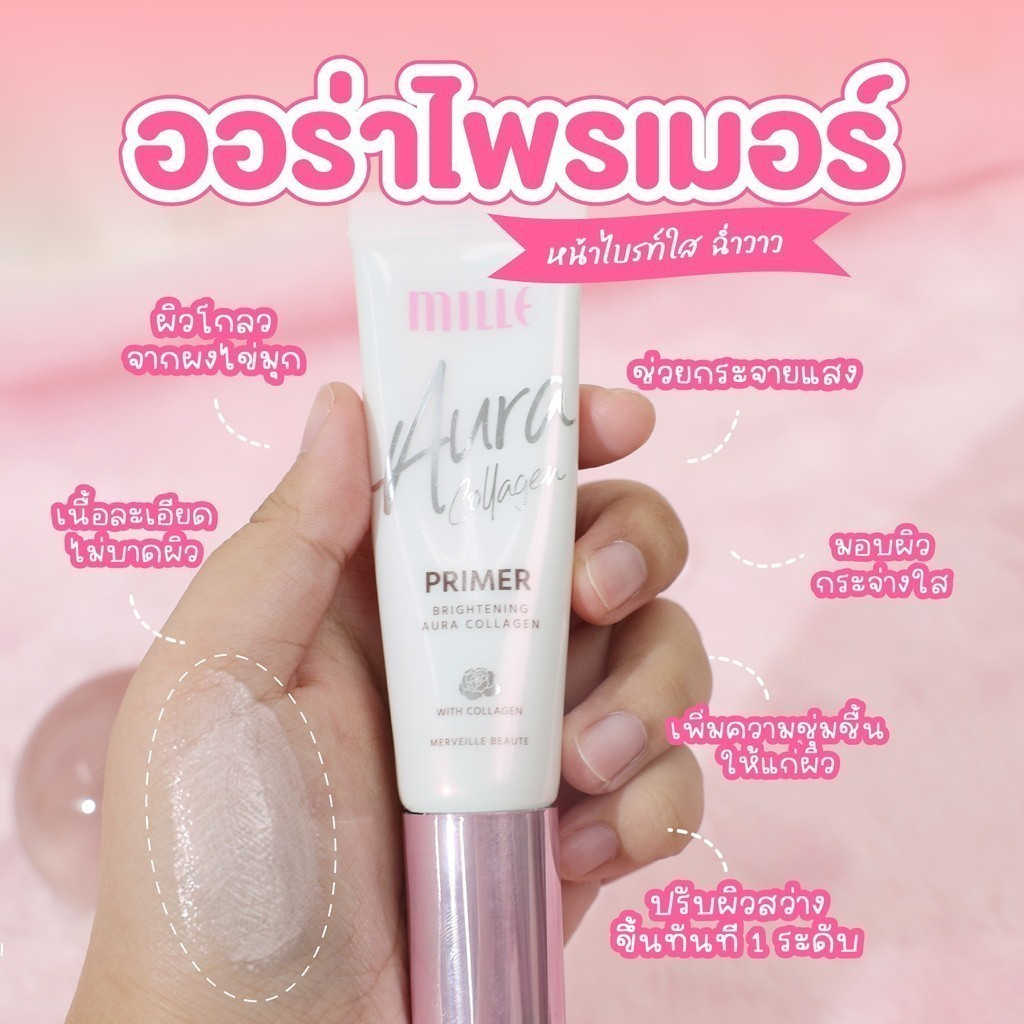 (1ชิ้น) Mille Brightening Aura Collagen Primer 8g. มิลเล่ ไพรเมอร์ คอลลาเจน ผิวโกลว์กระจ่างใส