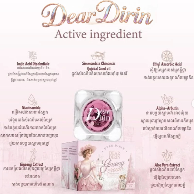 เดียร์ เดอริน ครีมบำรุงผิวหน้า Dirin THAILAND Ginseng cream Ginseng face cream removes acne 10g