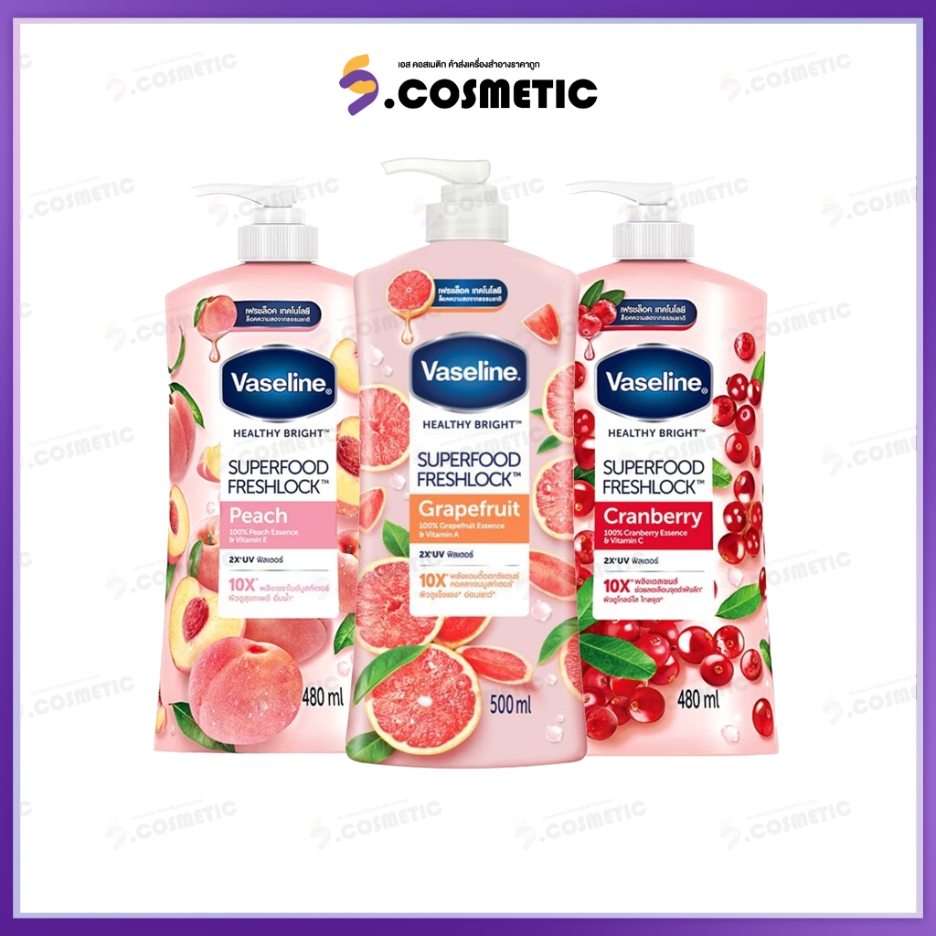 Vaseline วาสลีน เฮลธี้ ไบรท์ ไบรท์ ซุปเปอร์ฟู้ด เฟรชล็อค 480 มล. (มีให้เลือก 3 สูตร)