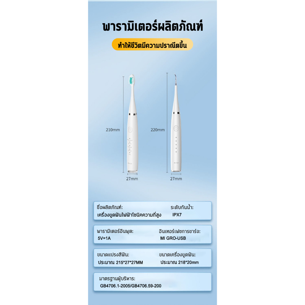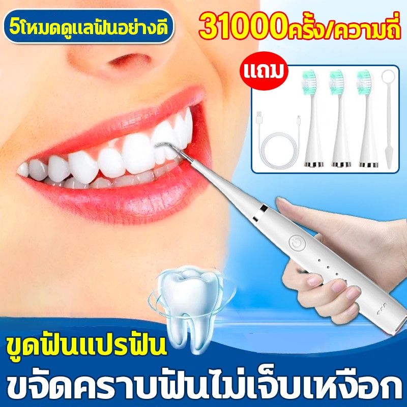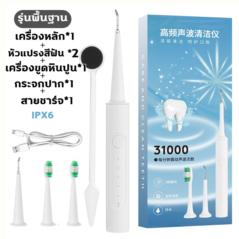 ขจัดหินปูนฟันเองได้ง่ายๆ ไม่เจ็บเหงือก ที่ขูดหินปูน เครื่องขูดหินปูน 2ใน1 ขจัดหินปูนฟัน แปรงฟัน ปรับได้ 5โหมด ล้างน้ำได้