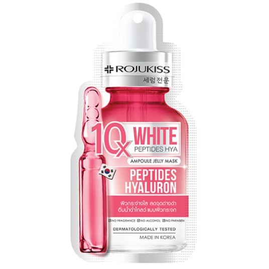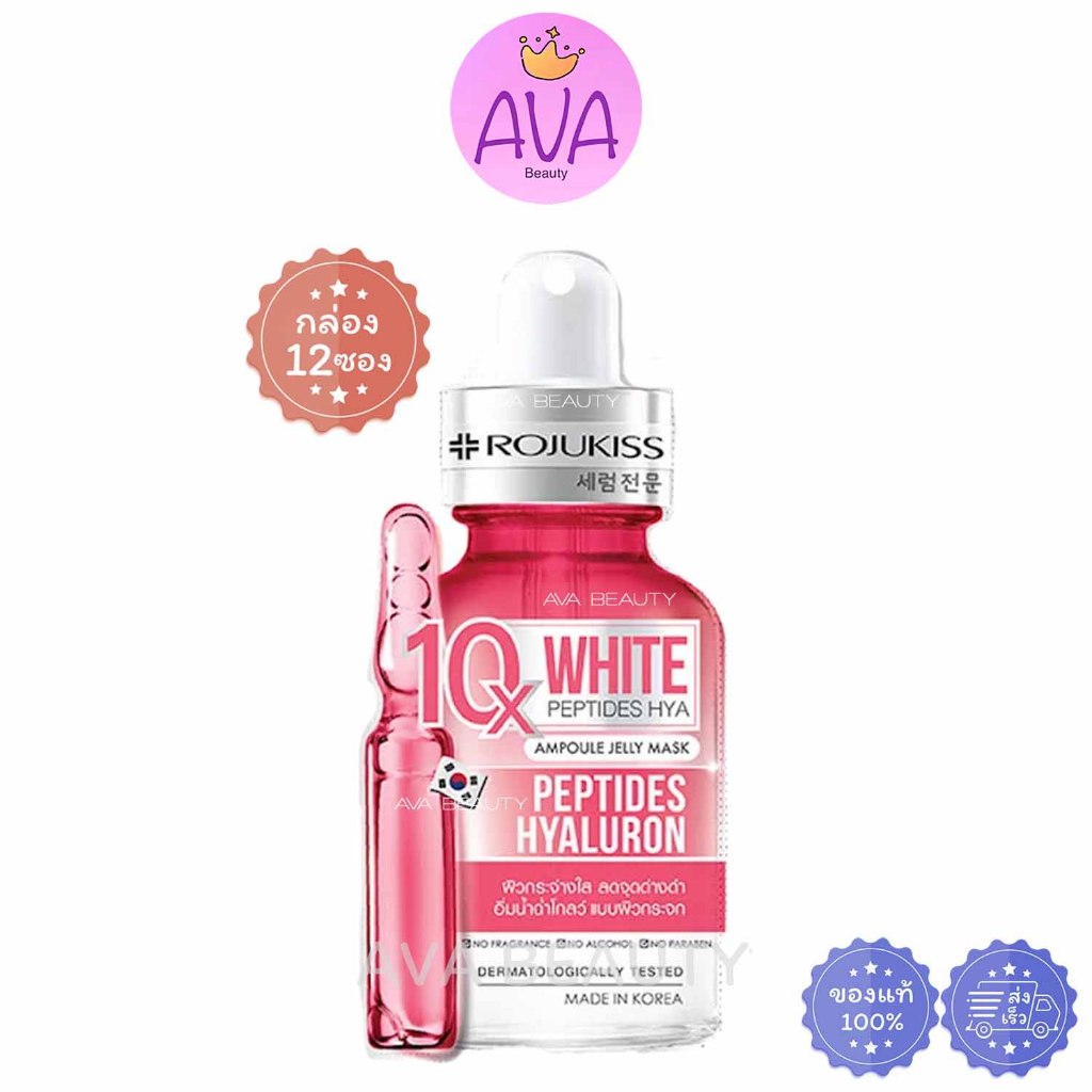 (12ชิ้น/กล่อง) Rojukiss โรจูคิส ไวท์ เปปไทด์ ไฮยา 10X แอมพูล เจลลี่ มาส์ก (กล่องชมพู) ผิวกระจก[3857]