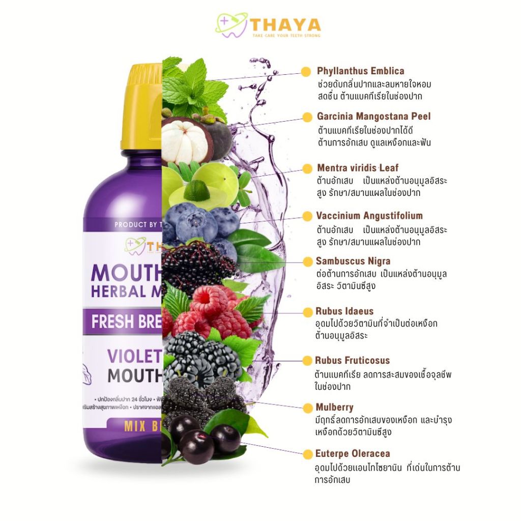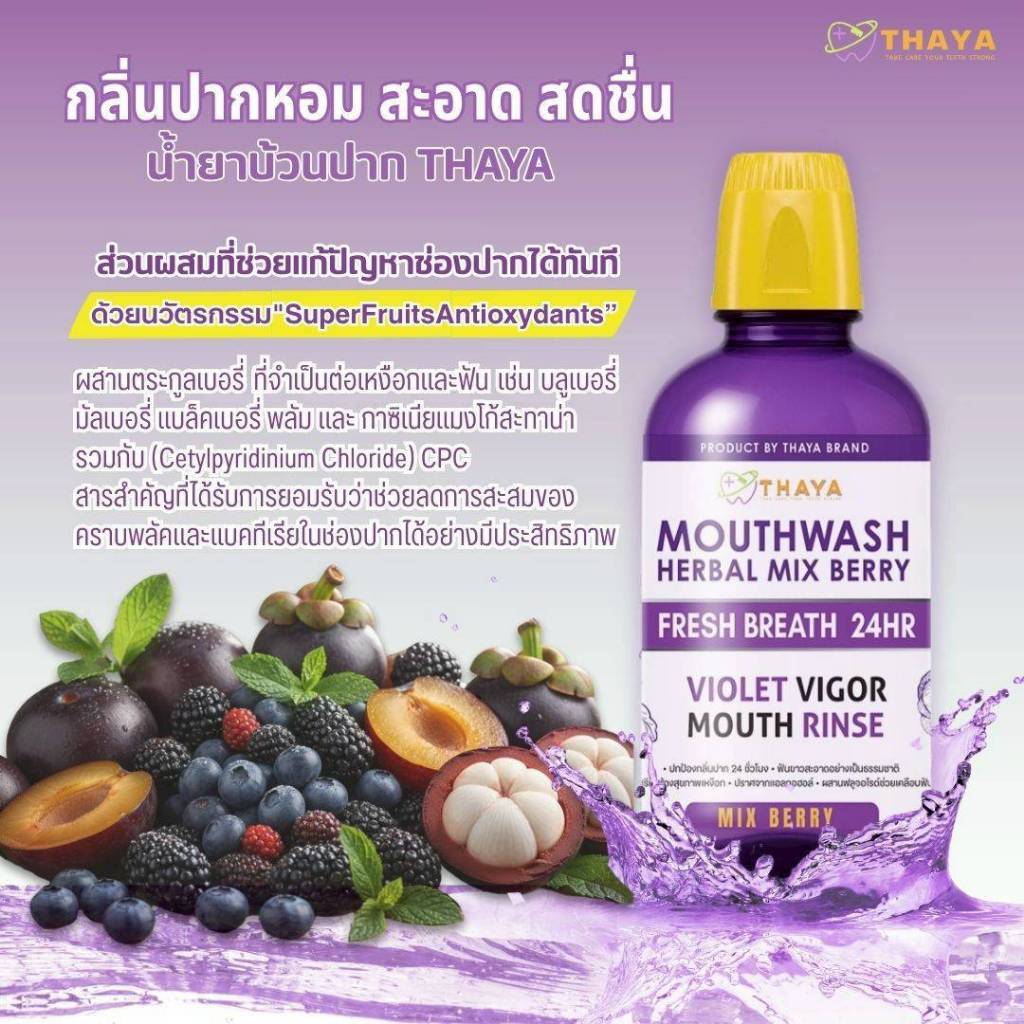 น้ำยาบ้วนปากTHAYA ลดคราบเหลือง ฟันขาว กลิ่นปากหอม สดชื่น Mouthwash Herbal Mix Berry
