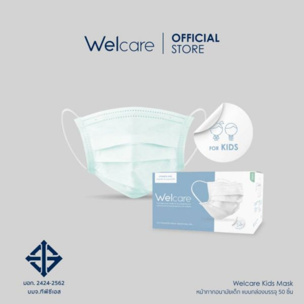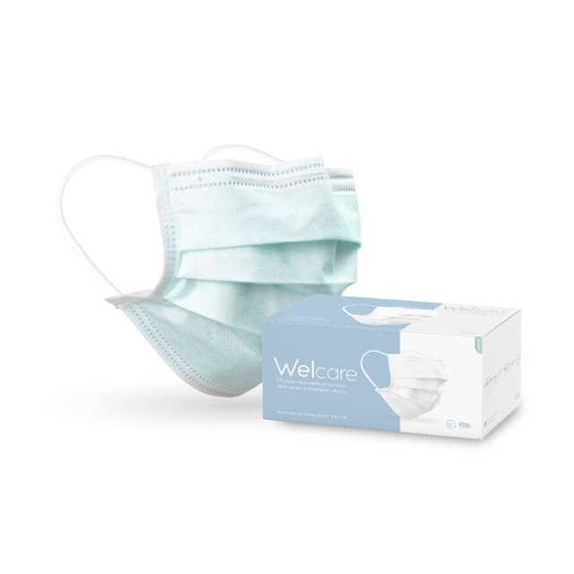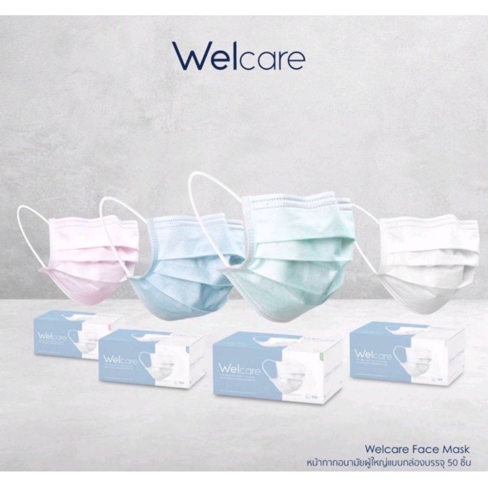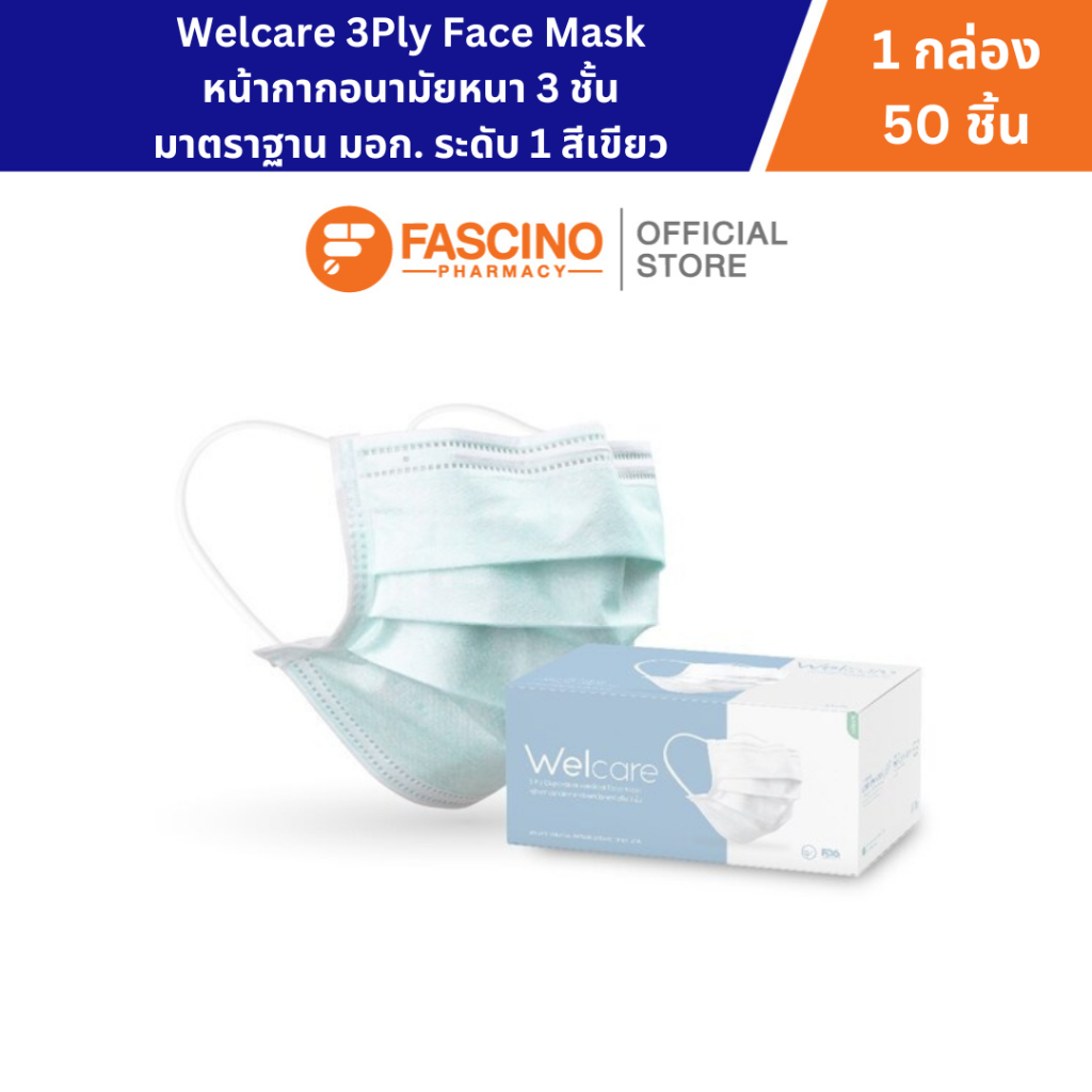Welcare 3Ply Face Mask หน้ากากอนามัย หนา 3 ชั้น มาตราฐาน มอก.ระดับ1 สีเขียว (50 ชิ้น / 1 กล่อง)