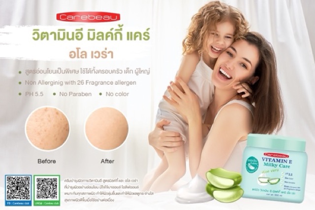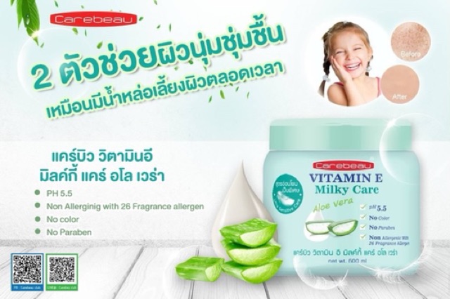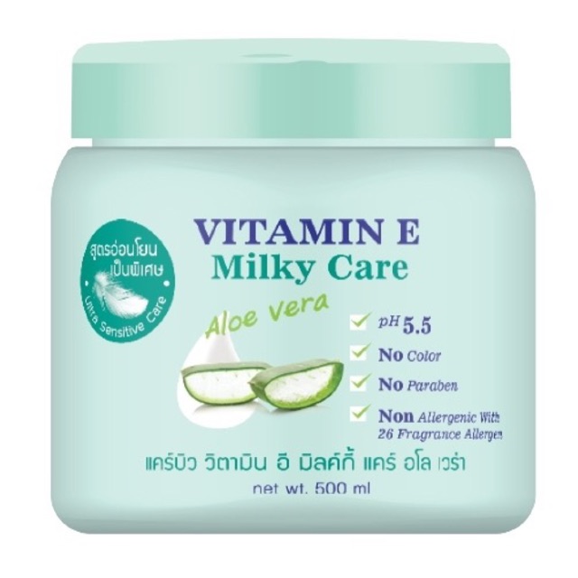 Carebeau แคร์บิว โลชั่น วิตามินอี มิลค์กี้แคร์ สำหรับผิวบอบบางแพ้ง่าย สูตรว่านหางจระเข้ 500มล