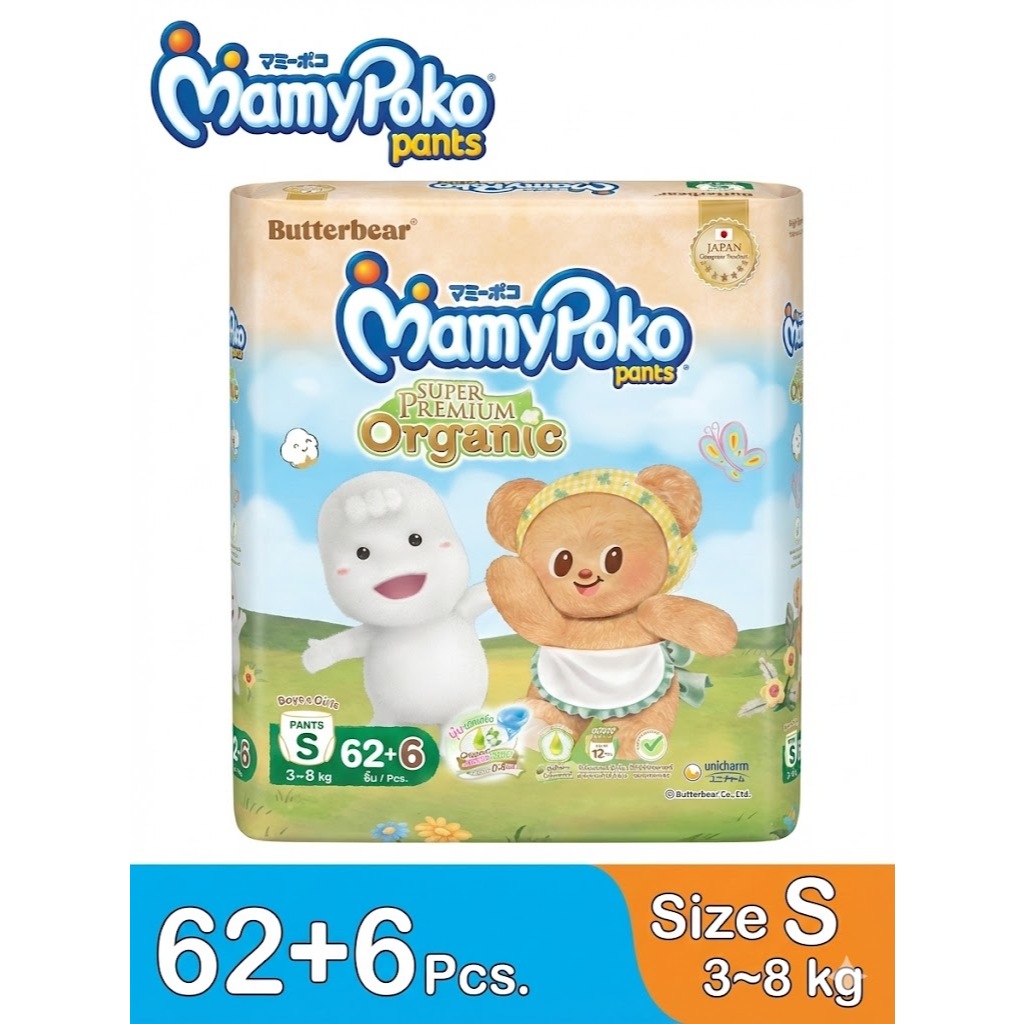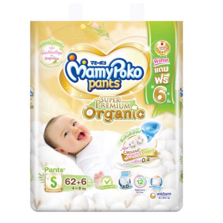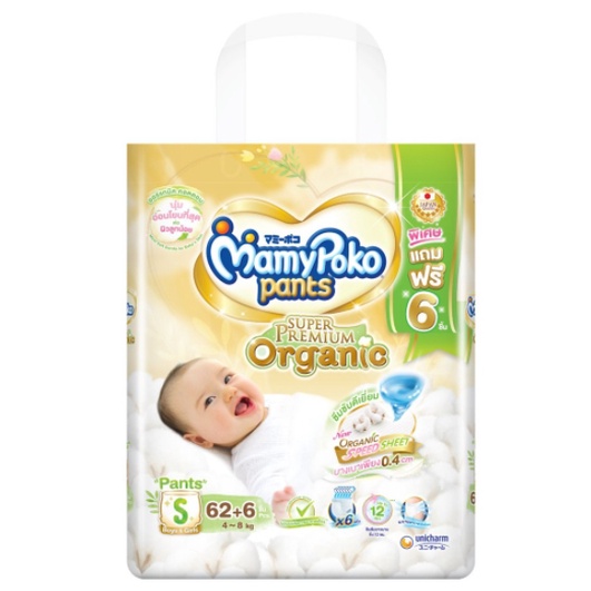 Mamypoko มามี่โพโคแพ้นท์ ออร์แกนิค S 62+6 (แพ็คเกจใหม่)