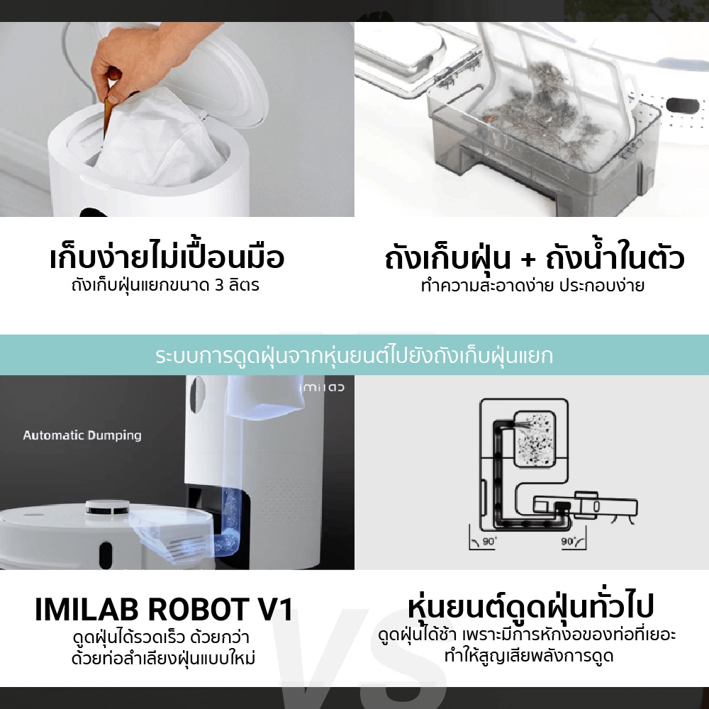 (Clearance Sale) IMILAB ROBOT Vacuum V1 หุ่นยนต์ดูดฝุ่น พร้อมถังเก็บฝุ่นแยก ดูดฝุ่น กวาดพื้น ถูพื้น พลังดูดสูง -7D