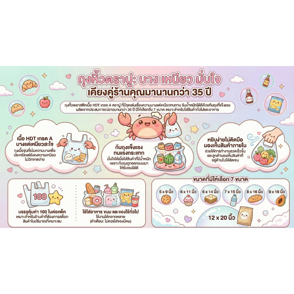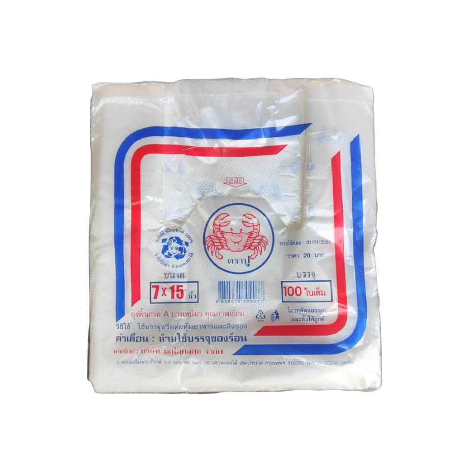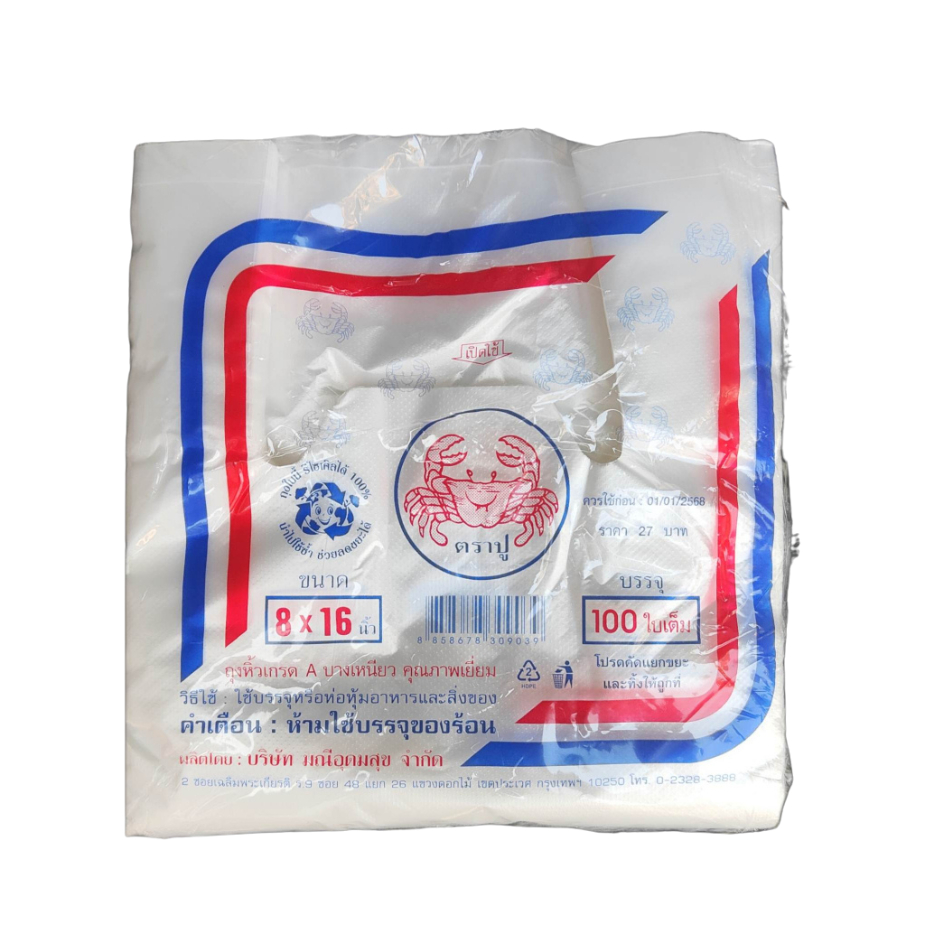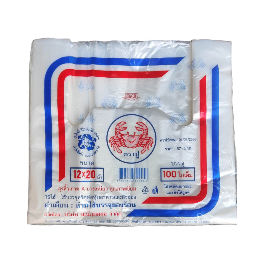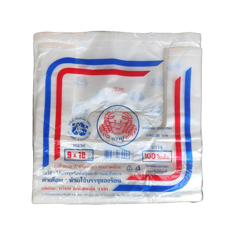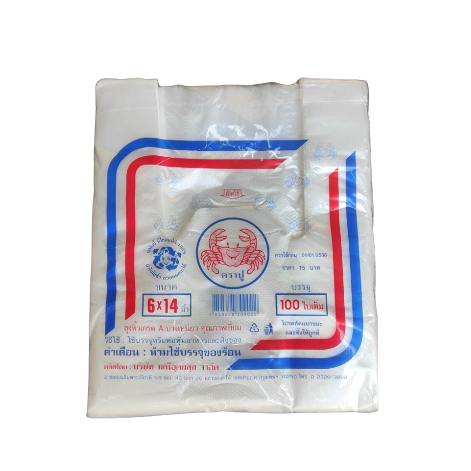 ตราปู ถุงหิ้ว 100 ใบ เนื้อ HDT เกรด A เนื้อถุงขุ่นเหนียว บาง เหนียว