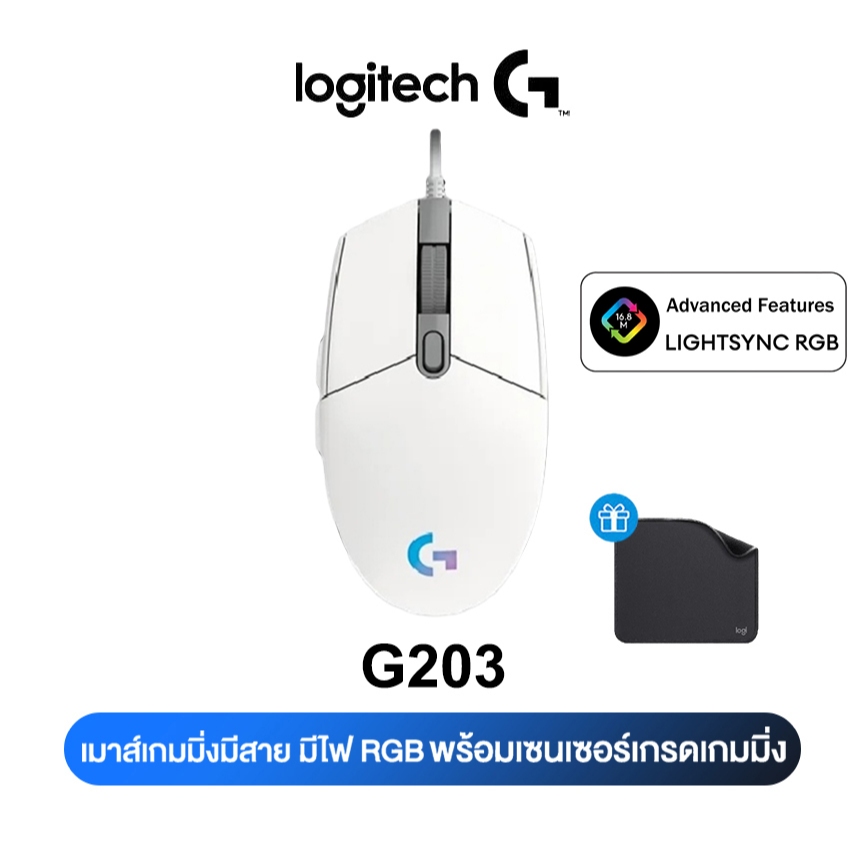Logitech G203 LIGHTSYNC Wired Gaming Mouse (เมาส์เกมมิ่งไฟRGB 6ปุ่มตั้งโปรแกรมได้ เซนเซอร์แม่นยำ น้ำหนักเบา)