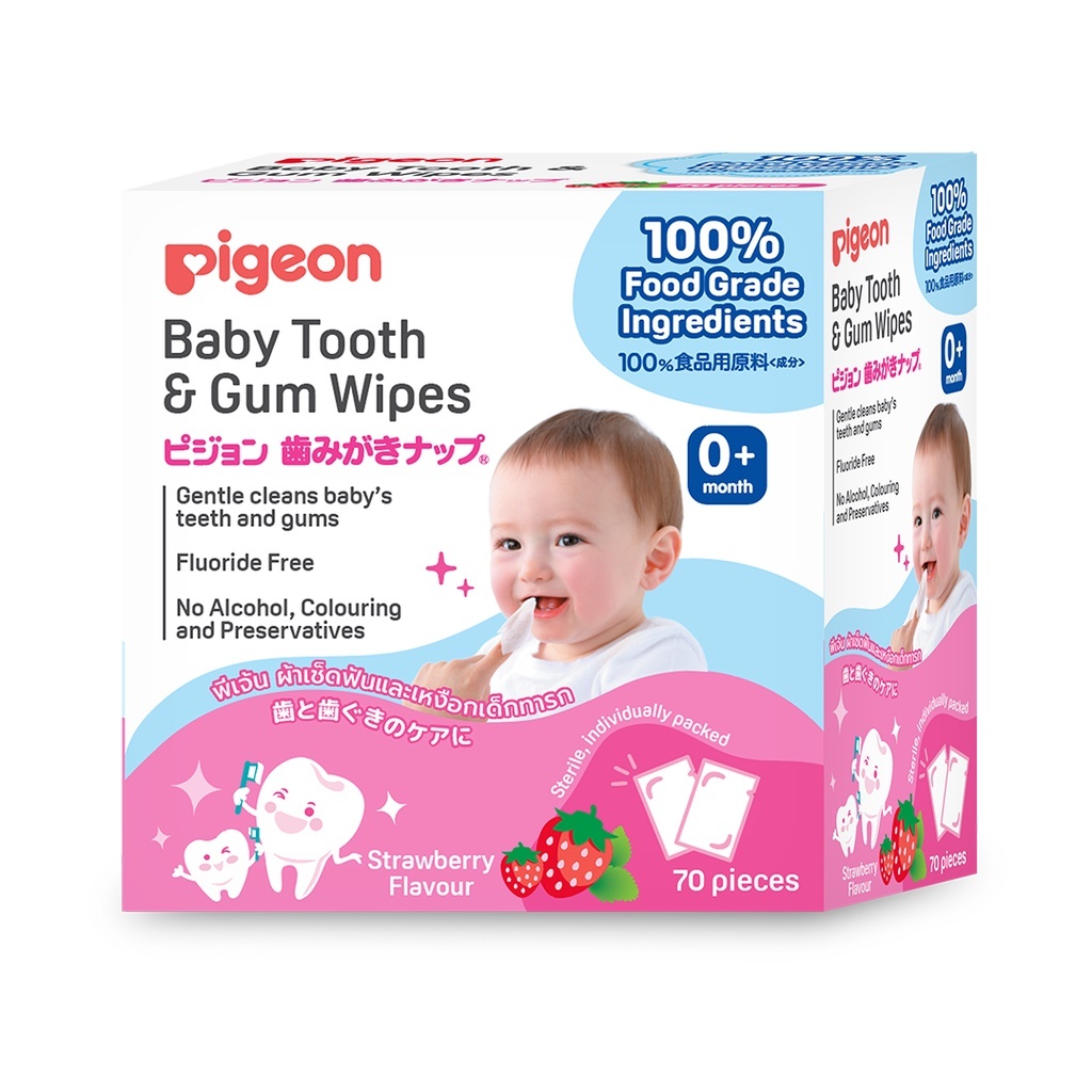 แบ่งขาย Pigeon Baby Tooth & Gum Wipes ผ้าเช็ดฟัน เหงือก ลิ้น กลิ่น Xylitol และกลิ่น Strawberry