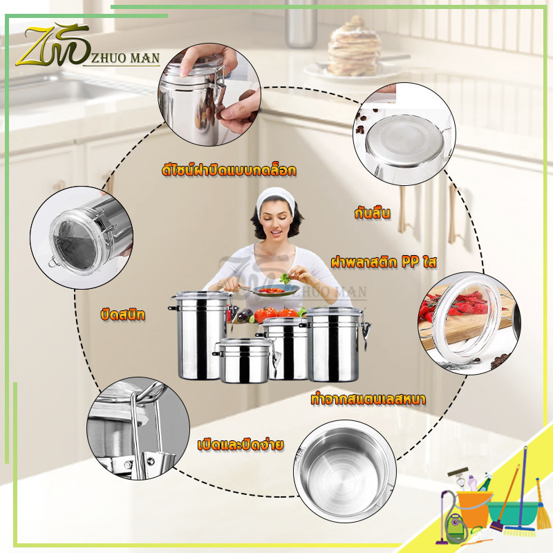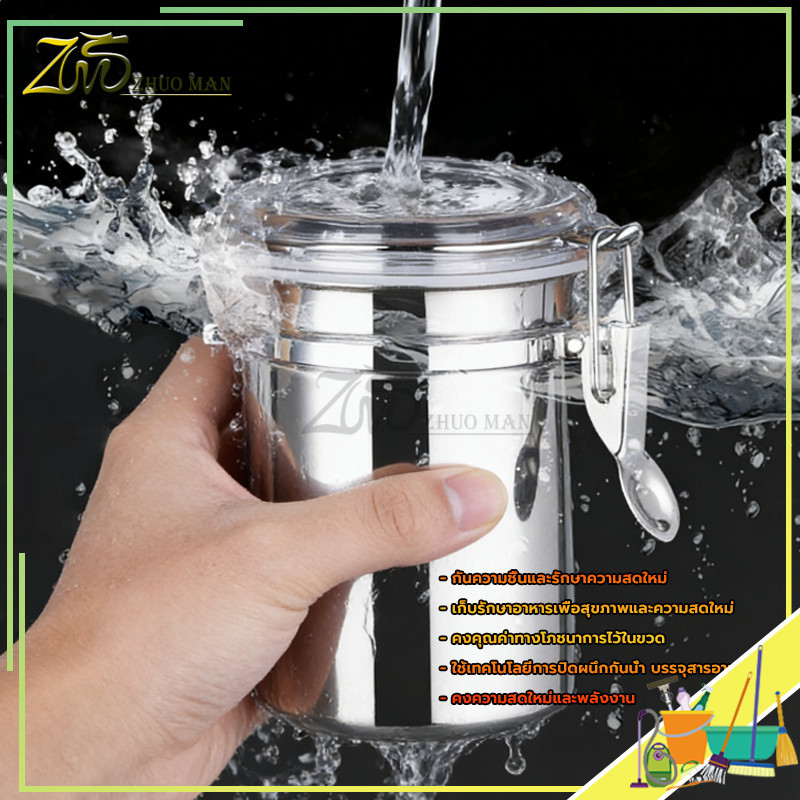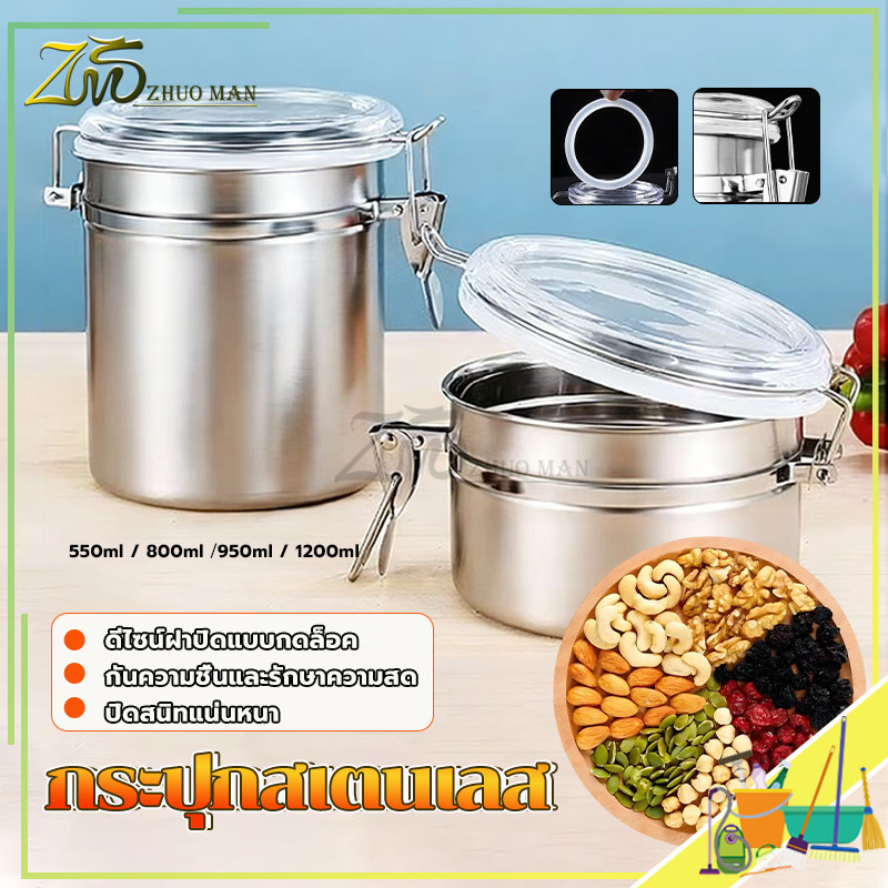 กระปุกส เตนเลส โหลสูญญากาศ กระปุกสเตนเลสใส่กาแฟ กล่องเก็บเมล็ดกาแฟ กระปุกกันความชื้น แหวนซีลซิลิโคนกันรั่วซึม มี 4 ขนาด