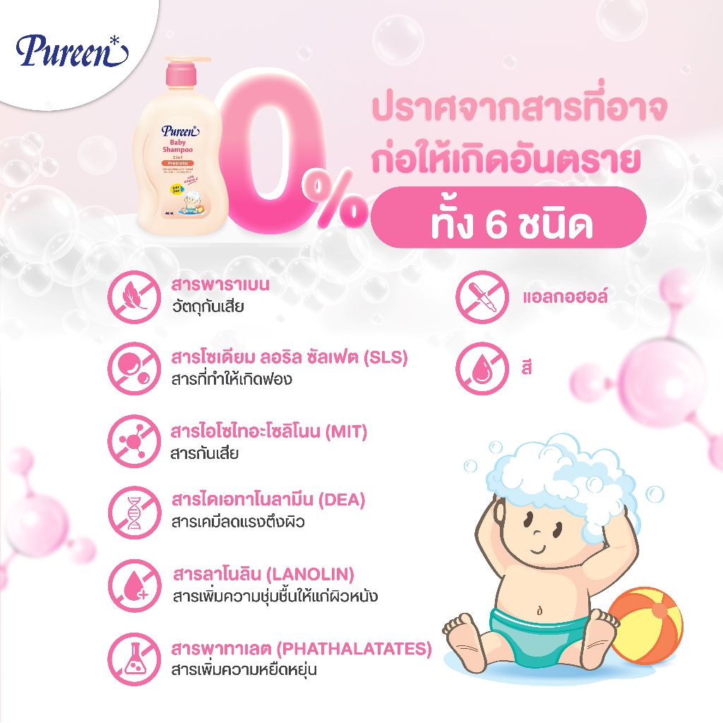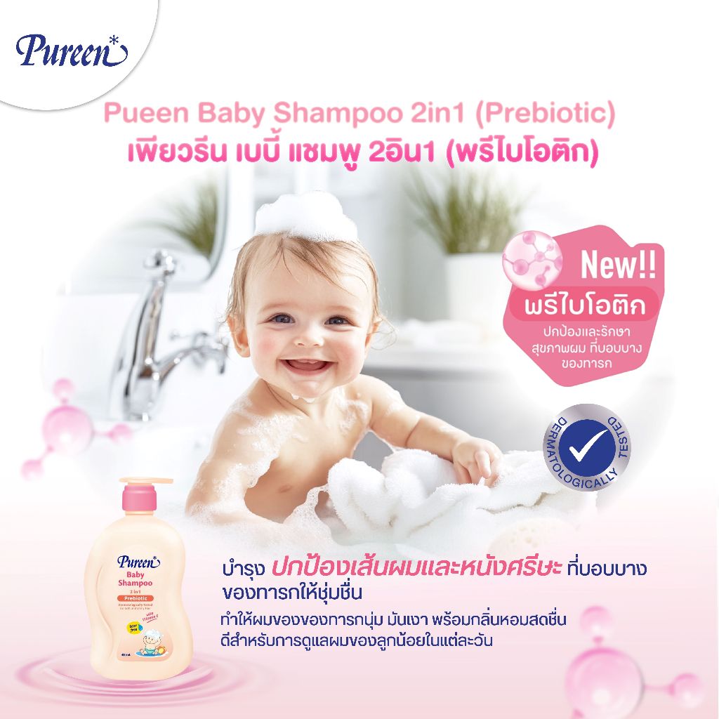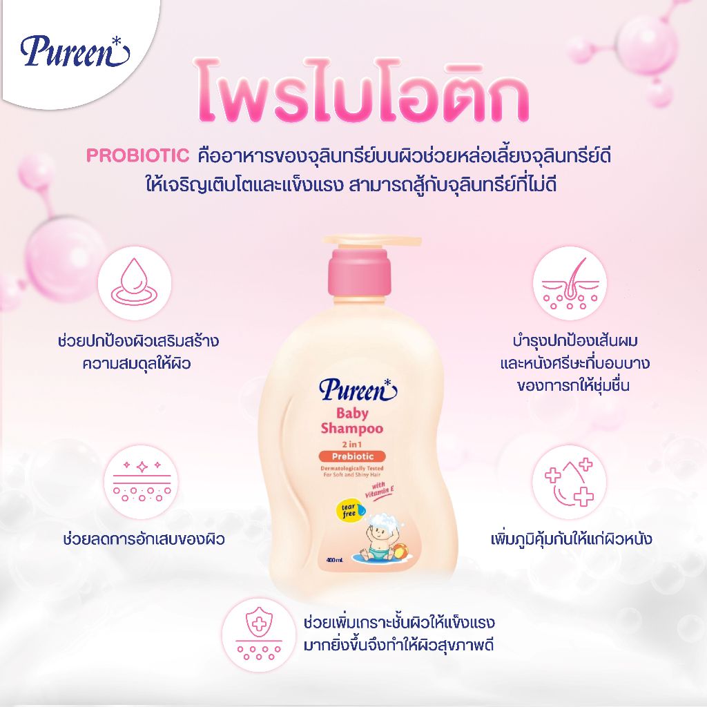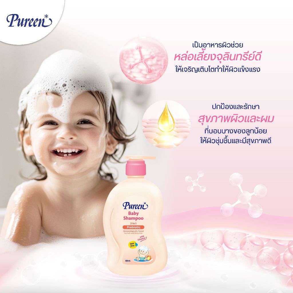 Pureen เพียวรีน เบบี้แชมพู 2 อิน 1 พรีไบโอติก 400 มล.ปกป้องเส้นผมและหนังศรีษะที่บอบบาง