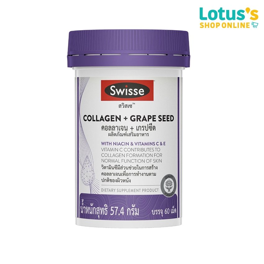 สวิสเซ คอลลาเจน+เกรปซีด 60 เม็ด SWISSE COLLAGEN+GRAPE SEED 60 TABLETS