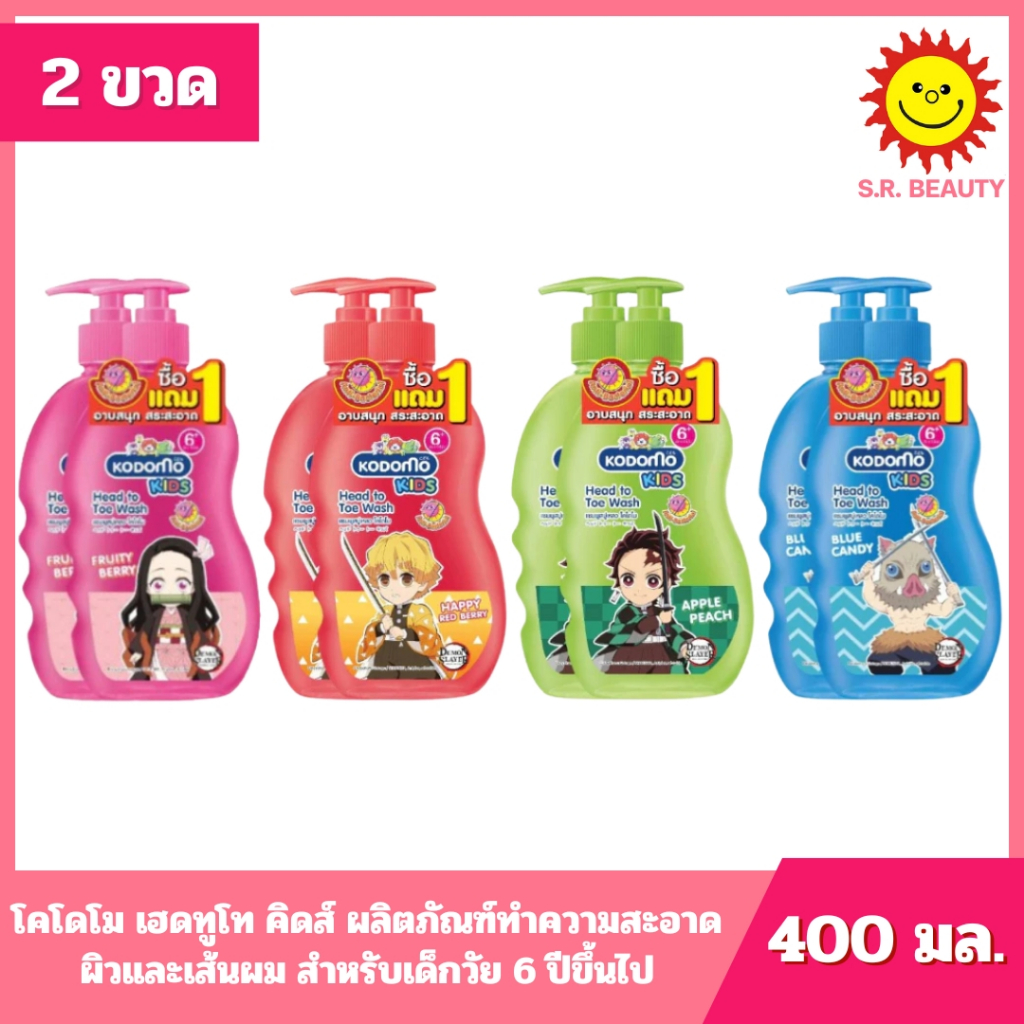 [ 1 แถม 1 ] Kodomo โคโดโม เฮดทูโท คิดส์ ผลิตภัณฑ์ทำความสะอาดผิวและเส้นผม ขนาด 400 มล. (2ขวด) 4 สูตร