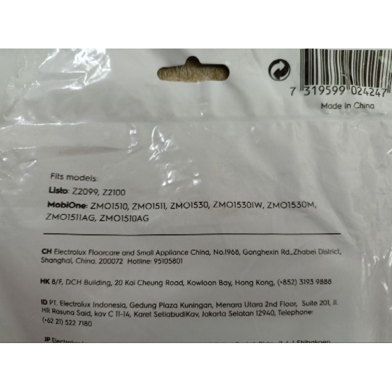 ของแท้ 100% ถุงเก็บฝุ่น electrolux รุ่น E89 1 ถุงมี 6 ชิ้น + Micro filter 1