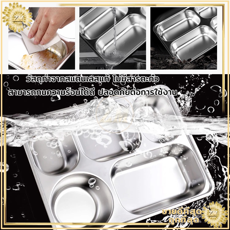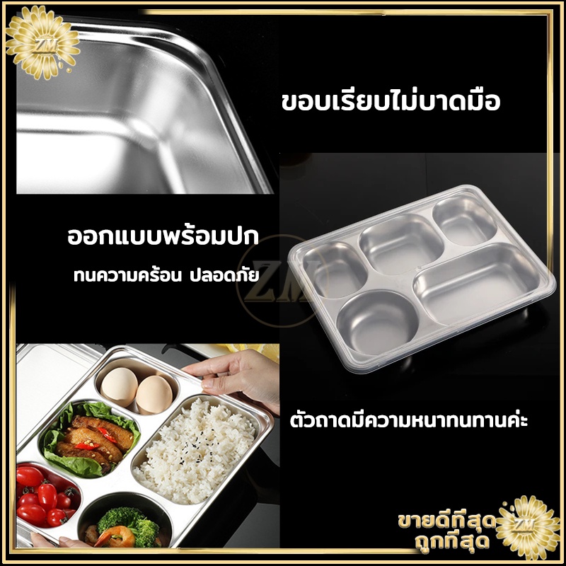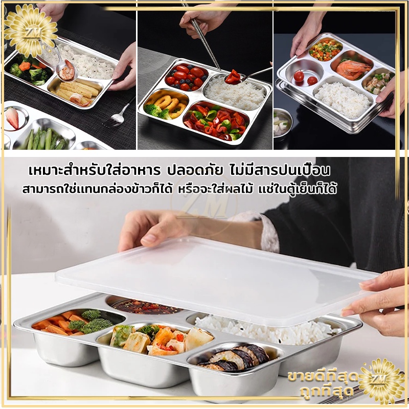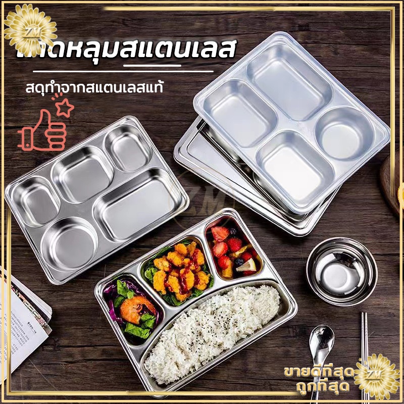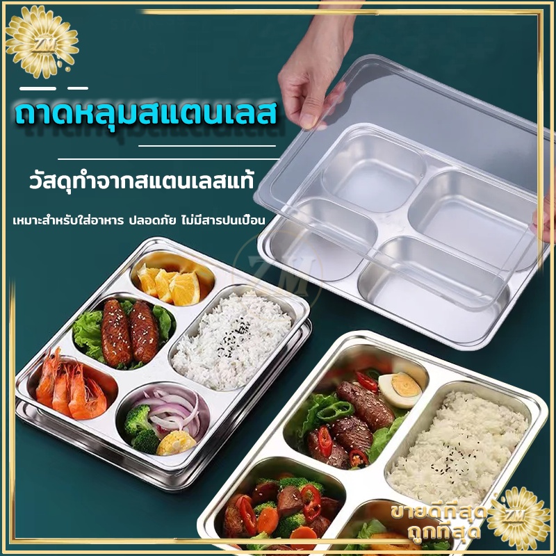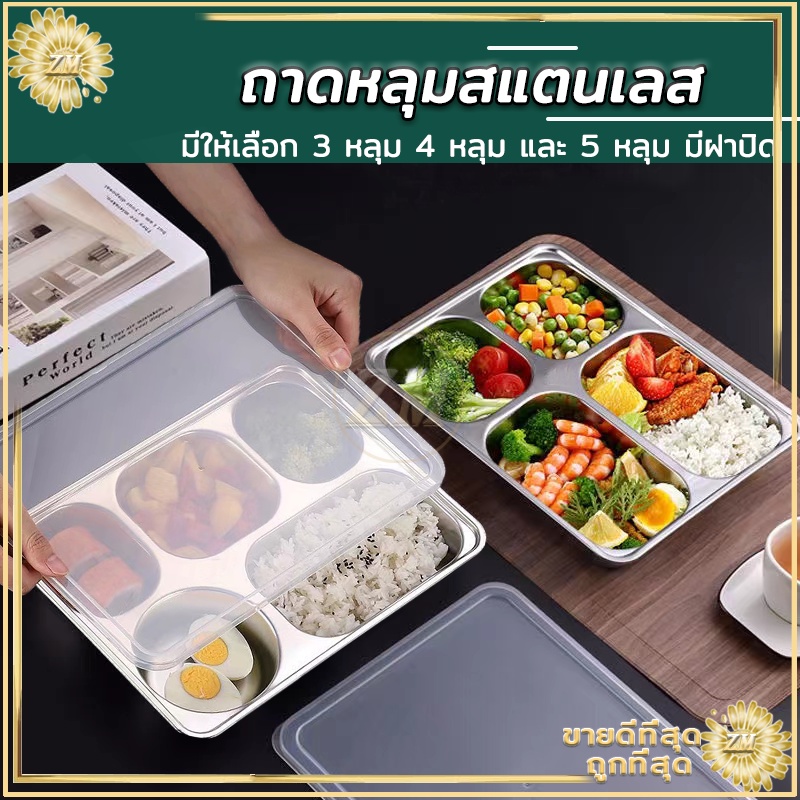 ถาดหลุมสแตนเลส ถาดหลุม 304กล่องข้าวสแตนเลส 3หลุม/4หลุม/5หลุม กล่องข้าวหลุม ถาดหลุมสแตนเลสมีฝาปิด กล่องข้าว 4 ช่อง