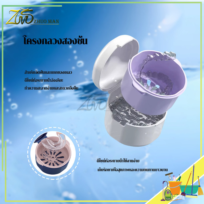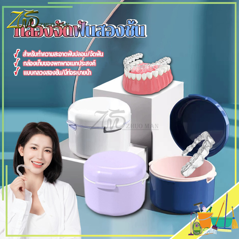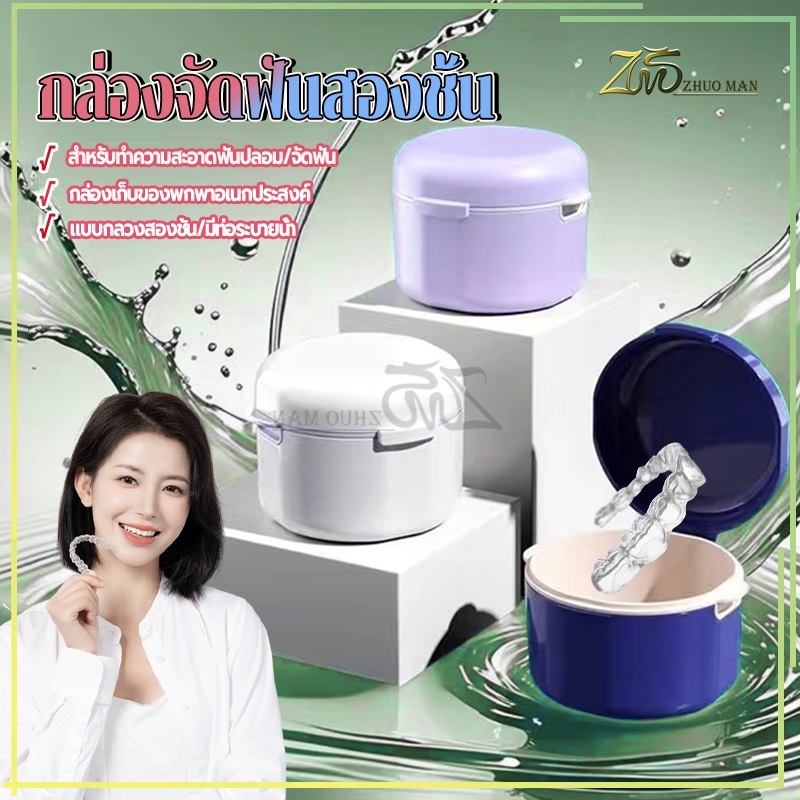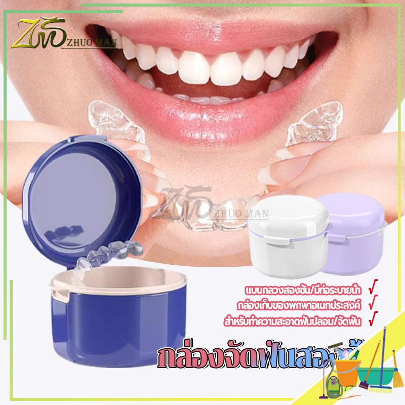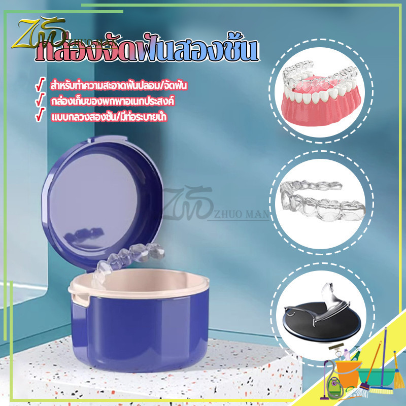 กล่องจัดฟันสองชั้น กล่องฟันปลอม กล่องใส่รีเทนเนอร์ วัสดุคุณภาพ มียางซีลกันน้ำป้องกันการรั่วซึม วัสดุคุณภาพ