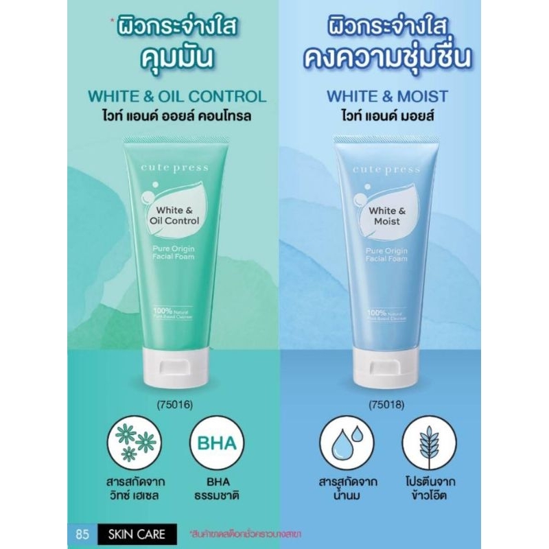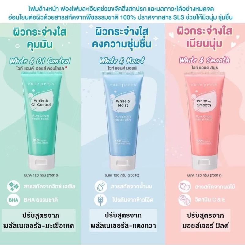 0Cute Press Pure Origin Facial Foam คิวท์เพรส โฟมล้างหน้าเนื้อละมุน 120g (White & Oil/White & Smooth/White & Moist) s.4