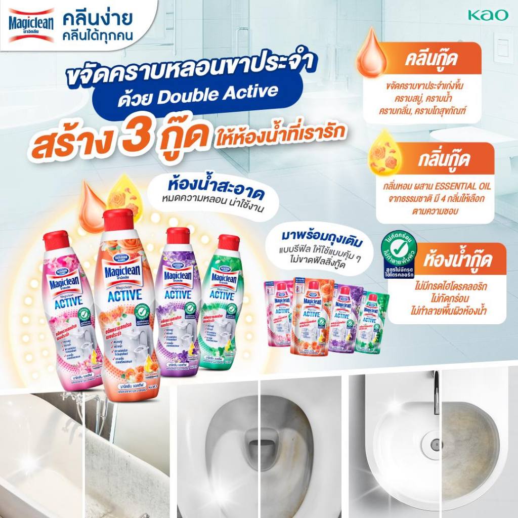 Magiclean มาจิคลีน แอ็คทีฟ 700 มล. น้ำยาล้างห้องน้ำ สูตรไม่มีกรดHCL ไม่แสบจมูก