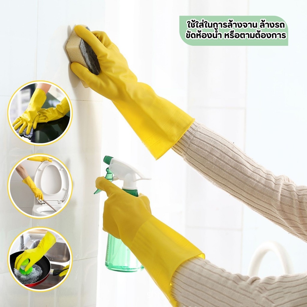 ถุงมือยางแขนยาว ถุงมือหยอดน้ำกรดยาง ถุงมือล้างจาน