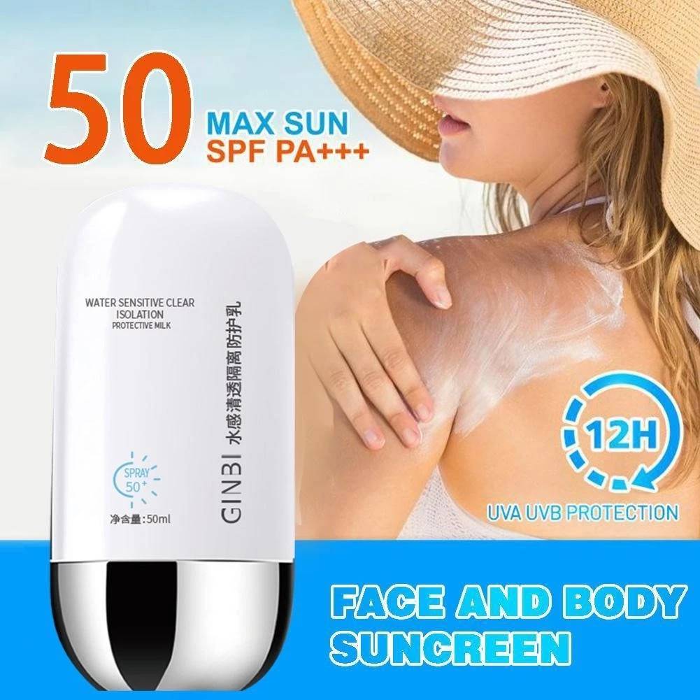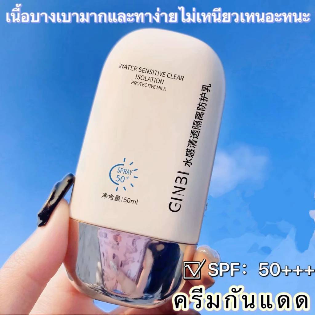 GINBI ครีมกันแดดนมวัว ป้องกันรังสี UVA/UVB SPF 50+ควบคุมความมัน ช่วยให้ผิดดูขาวกระจ่างใส กันแดด ขนาด 50 ml.