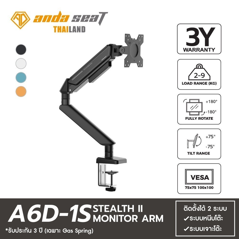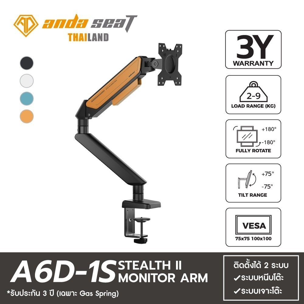 Anda Seat Monitor Arm แขนจับจอ มอนิเตอร์ 17-32 นิ้ว รับ 2-9 kg แขนแก๊สสปริง Stealth A6D ประกันศูนย์ไทย 3 ปี