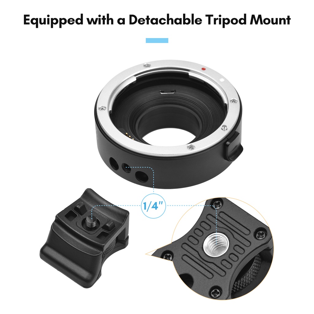 Andoer EF-FX II Lens Mount Adapter Ring Auto Focus Anti-Shake Aluminum Alloy with Tripod Mount Replacement for EF/EF-S Lens to Fuji X-mount Mirrorless Camera XT4 XT3 XS10 XT3