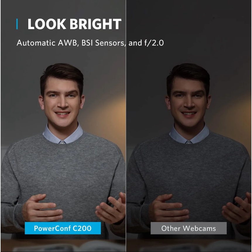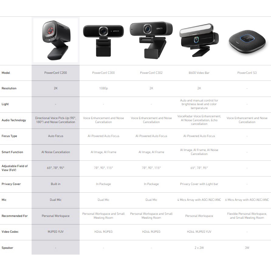 Anker PowerConf C200 2K Mac Webcam, Webcam for Laptop, Computer Camera, with AI-Noise Canceling Microphones, Stereo Mics