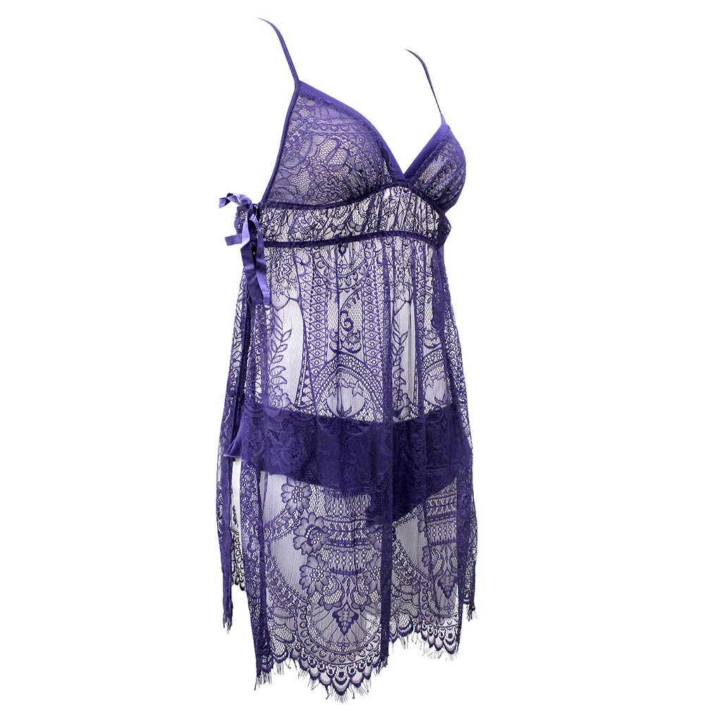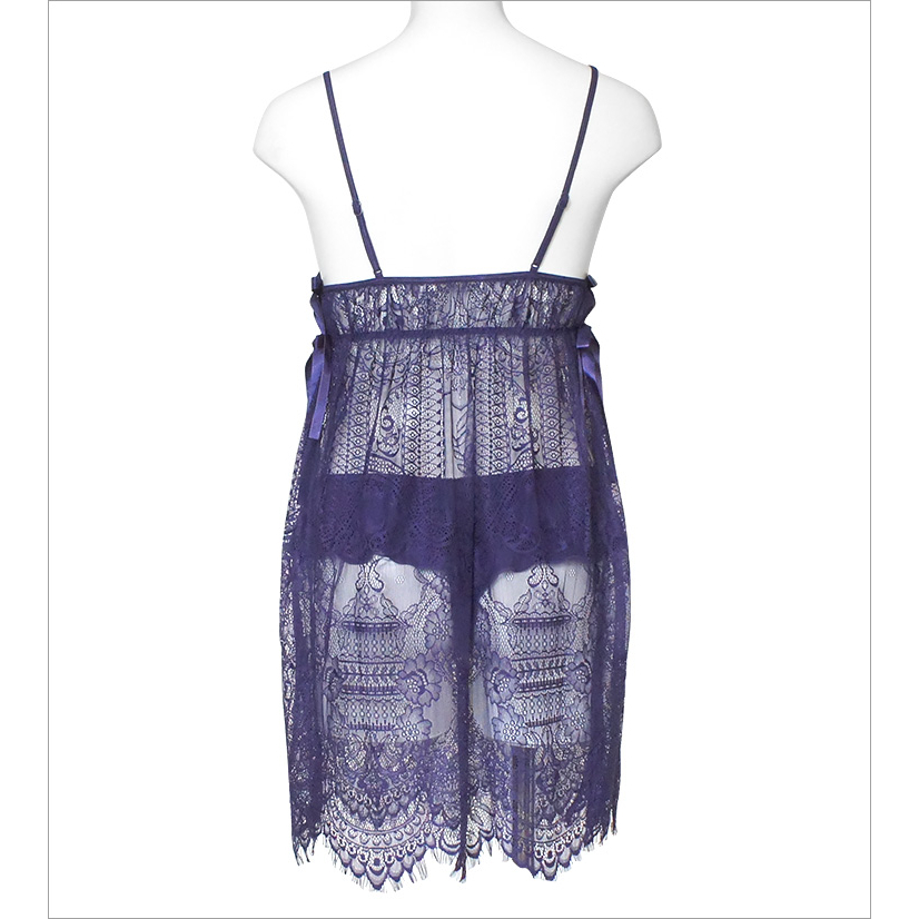 Annebra ชุดนอนสายเดี่ยว ผ้าลูกไม้ และกางเกงเข้าเซ็ต Lace Babydoll Set Nightwear รุ่น AN8-668 สีม่วง, สีพีช