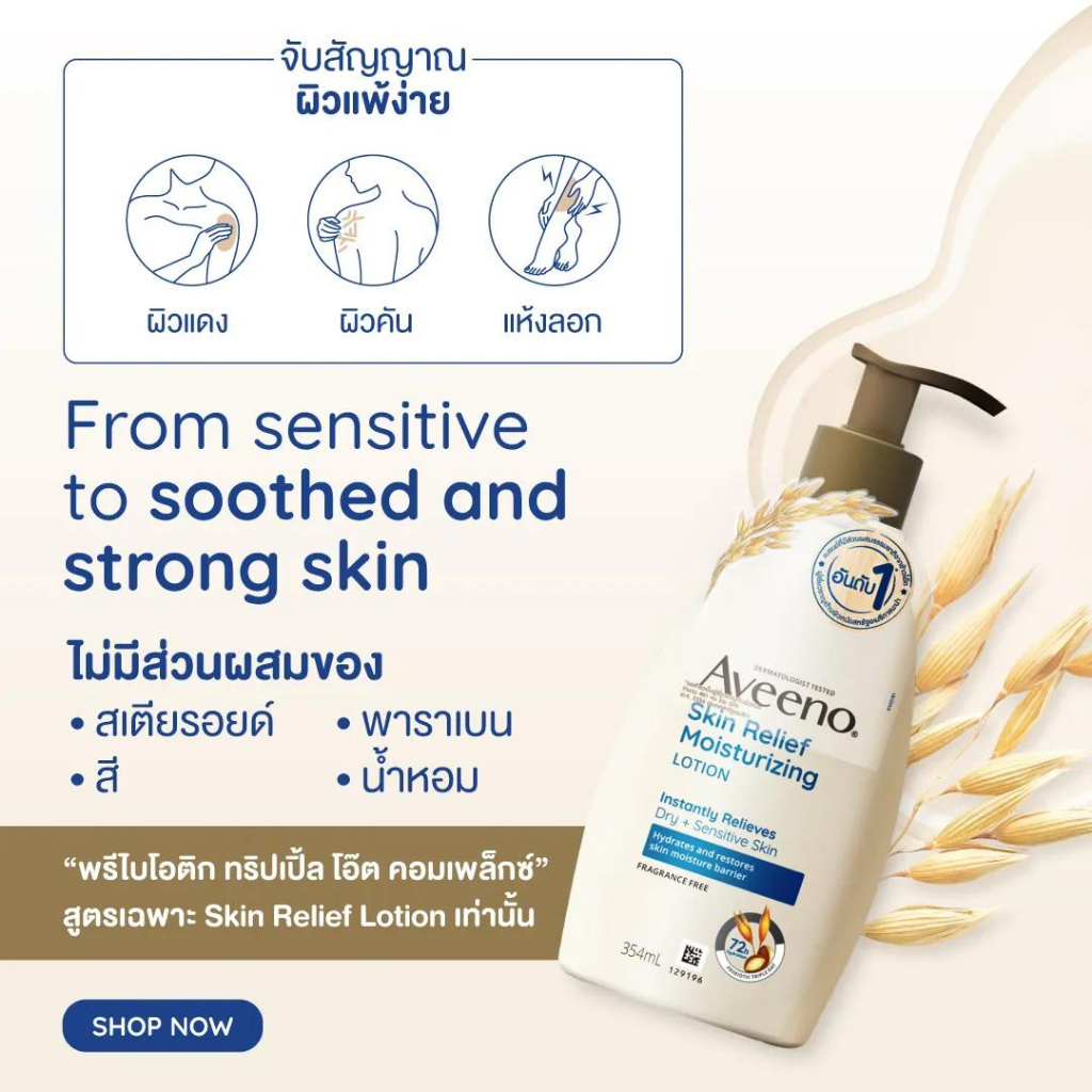 Aveeno Skin Relief Body Lotion 354 ml. อาวีโน่ สกิน รีลีฟ บอดี้ มอยส์เจอร์ไรซิ่ง บอดี้ โลชั่น 354 มล.