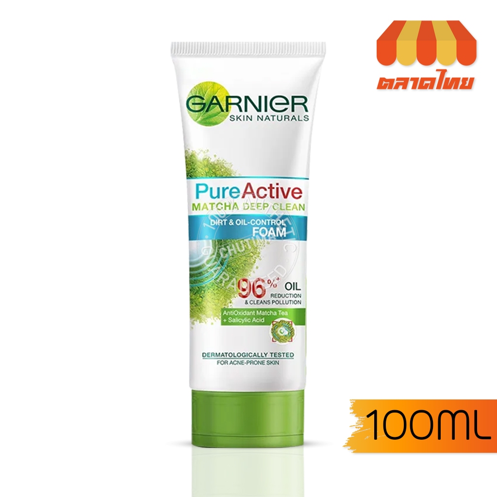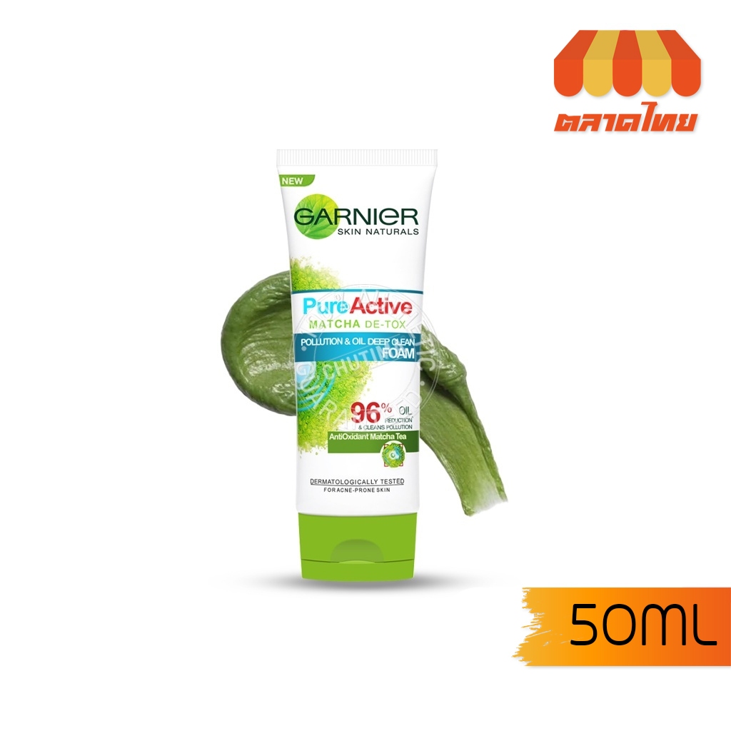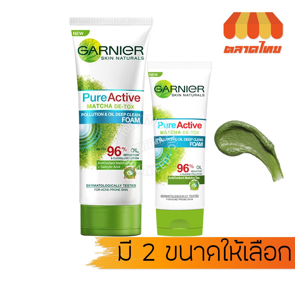 โฟมล้างหน้า การ์นิเย่เพียว แอคทีฟ มัทฉะ ดี-ท็อกซ์ โพลูชั่นแอนด์ออยล์ดีพคลีนโฟม Garnier Pure Active Matcha De-Tox Foam