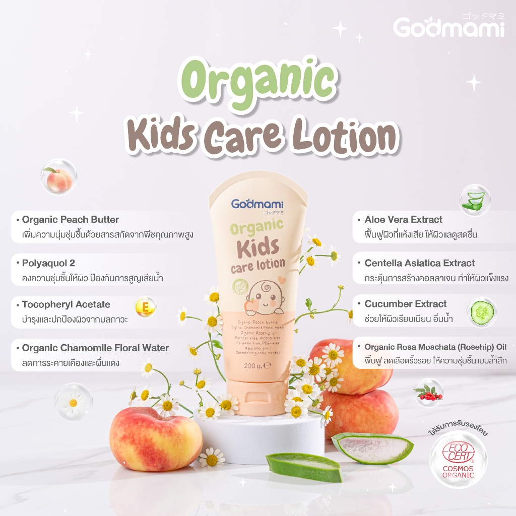 [โลชั่นทาผิวทารก ลดผดผื่น]Godmami ออร์แกนิค คิดส์แคร์ โลชั่น โลชั่นดูแลผิว ชุ่มชื้น ลดระคายเคือง
