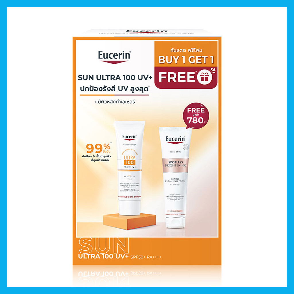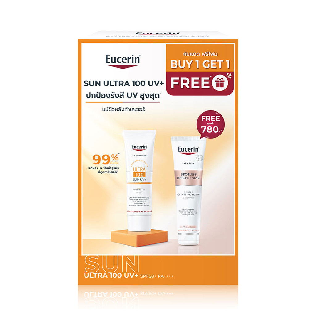 Eucerin Sun Ultra 100 UV+ 80ml [Free! Spotless Brightening Cleansing Foam 150g] ยูเซอริน กันแดดปกป้องสูงพิเศษ.
