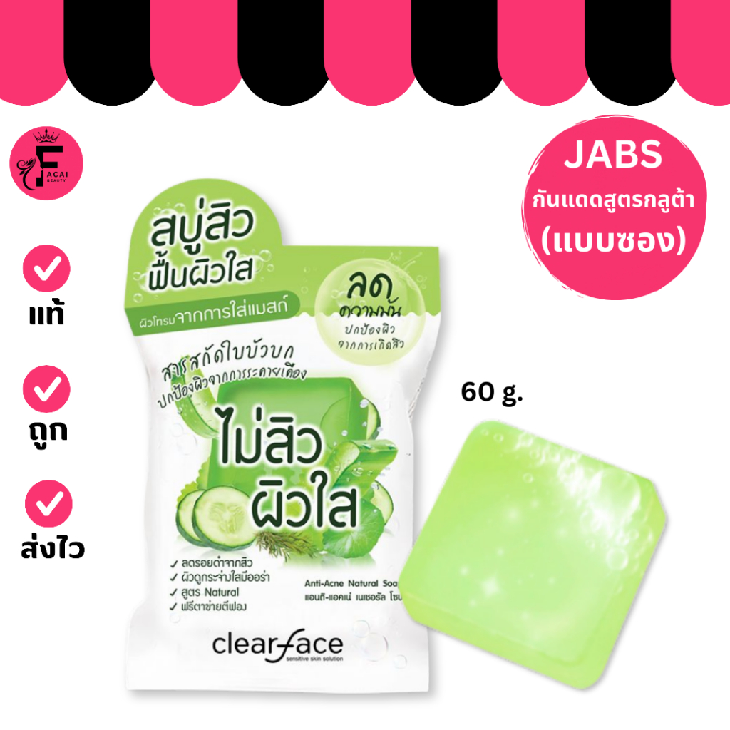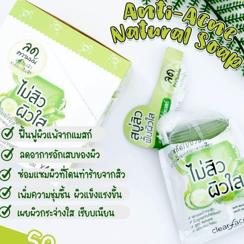 (ก้อน) Clear Face Anti-Acne Natural Soap เคลียร์เฟส แอนติ-แอคเน่ เนเชอรัล โซป (60 g.)