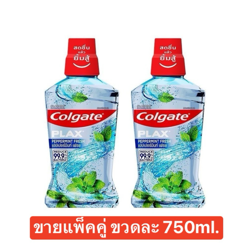 [ขายแพ็คคู่]คอลเกต พลักซ์ เปปเปอร์มินท์ เฟรช 750 มล. รวม 2 ขวด (น้ำยาบ้วนปาก) Colgate Plax Peppermint Fresh