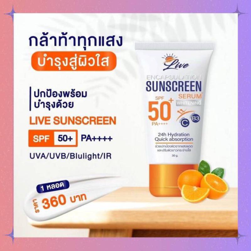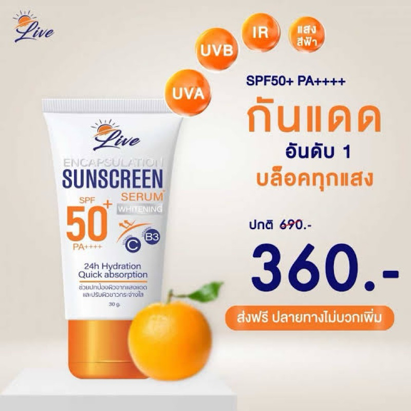 ครีมกันแดด Live Sunscreen กันแดดหน้าเนียน SPF50PA++