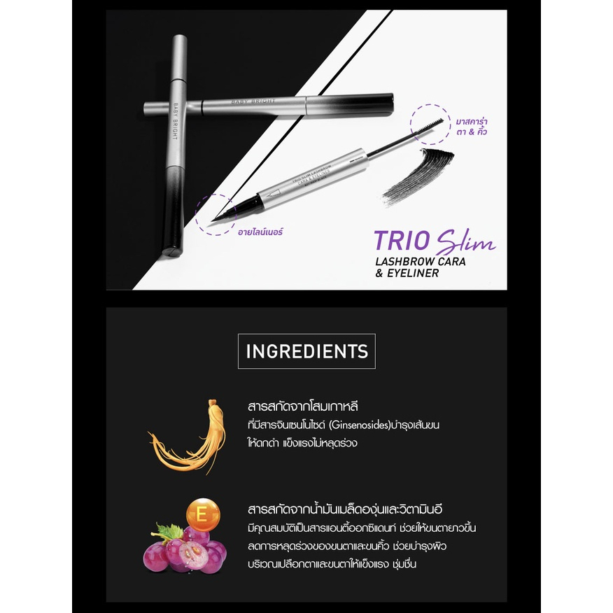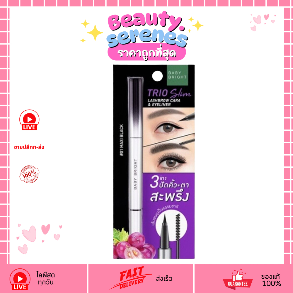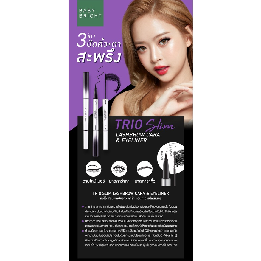 เบบี้ไบร์ท 3in1 ทรีโอสลิม อายไลเนอร์ มาสคาร่าคิ้ว ตา Baby Bright Trio Slim Lashbrow Cara Eyeliner
