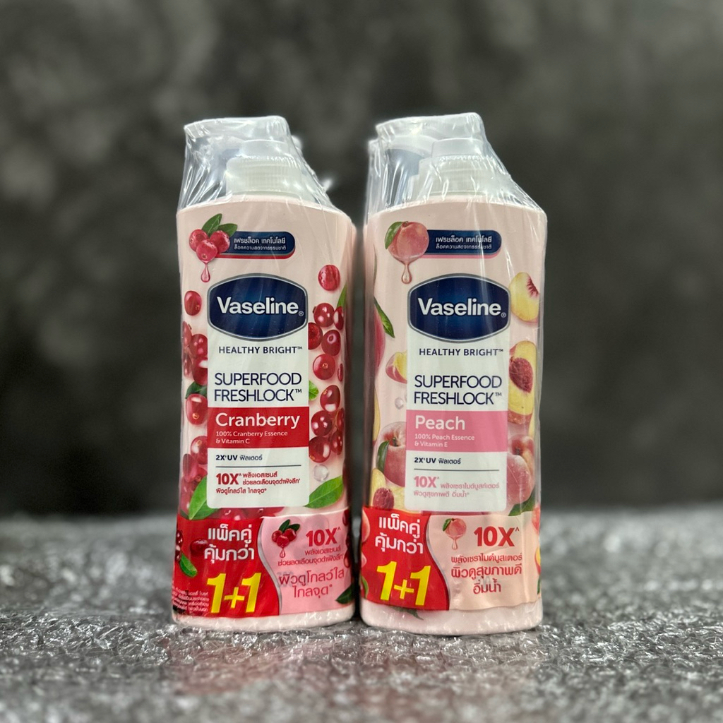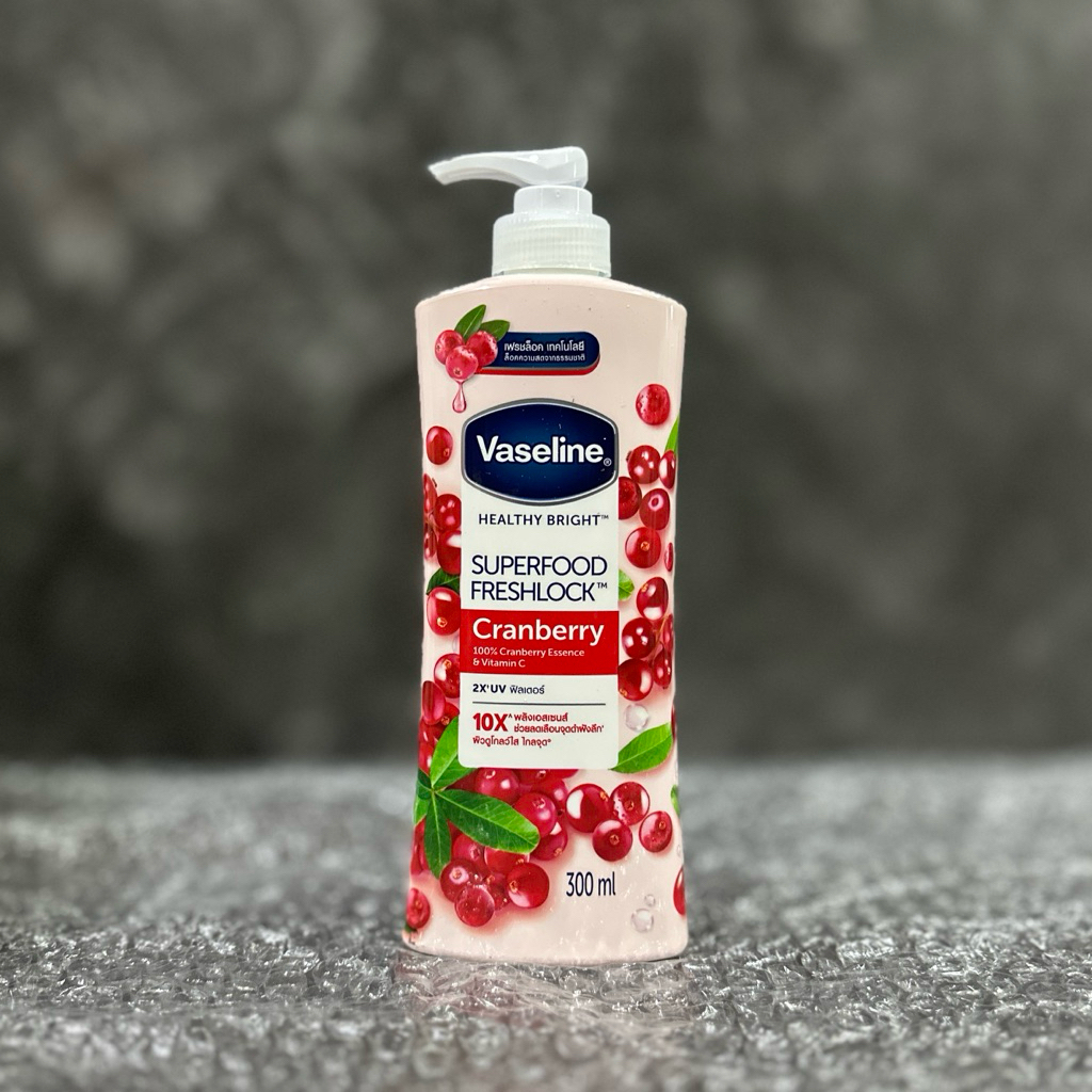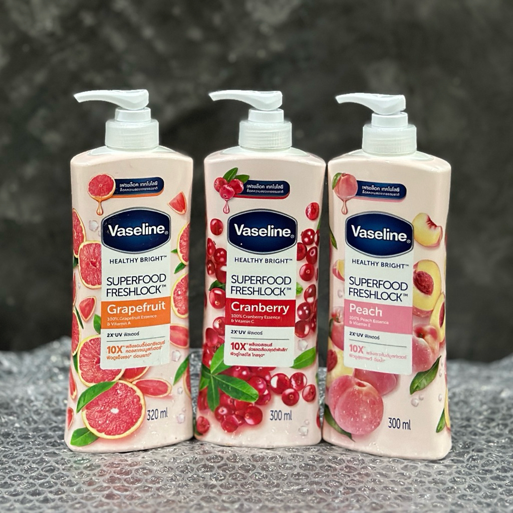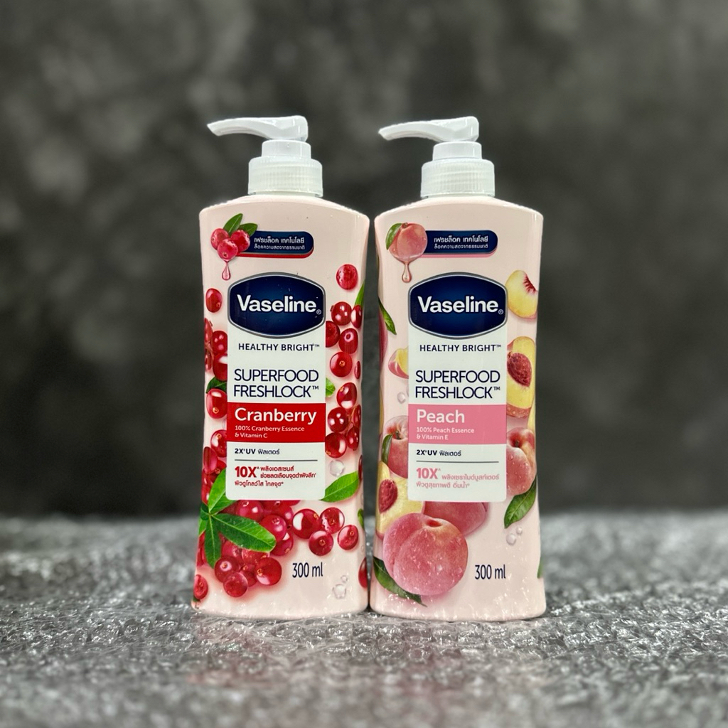 วาสลีน เฮลธี้ ไบรท์ ซุปเปอร์ฟู้ด เ ฟรชล็อค โลชั่น แครนเบอร์รี่ 300มล.พีช 300มล.VASELINE HEALTHY BRIGHT CRANBERRY 300ml.