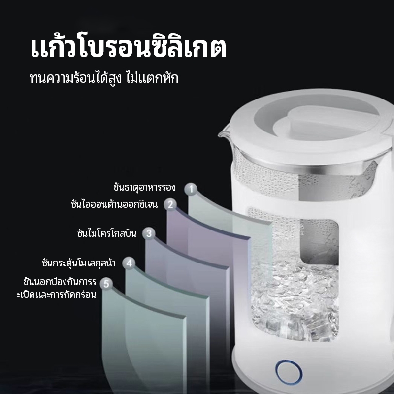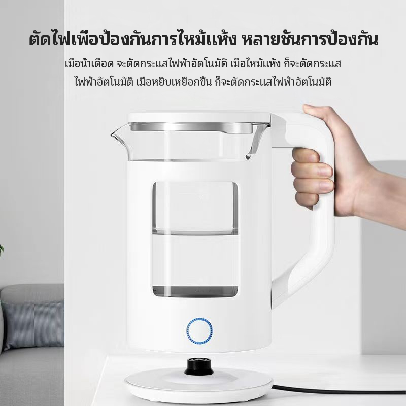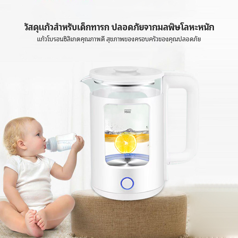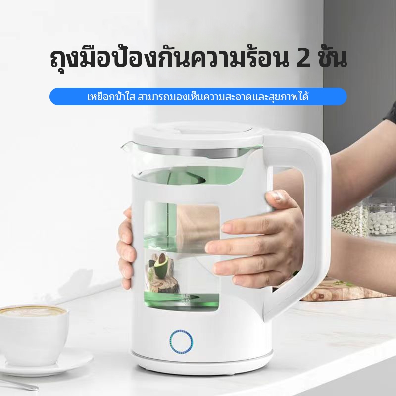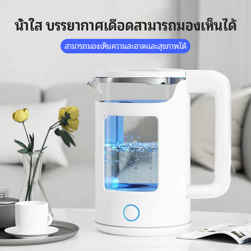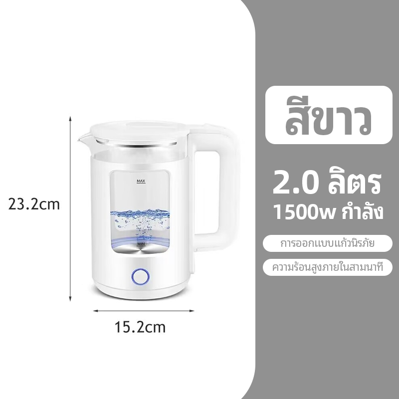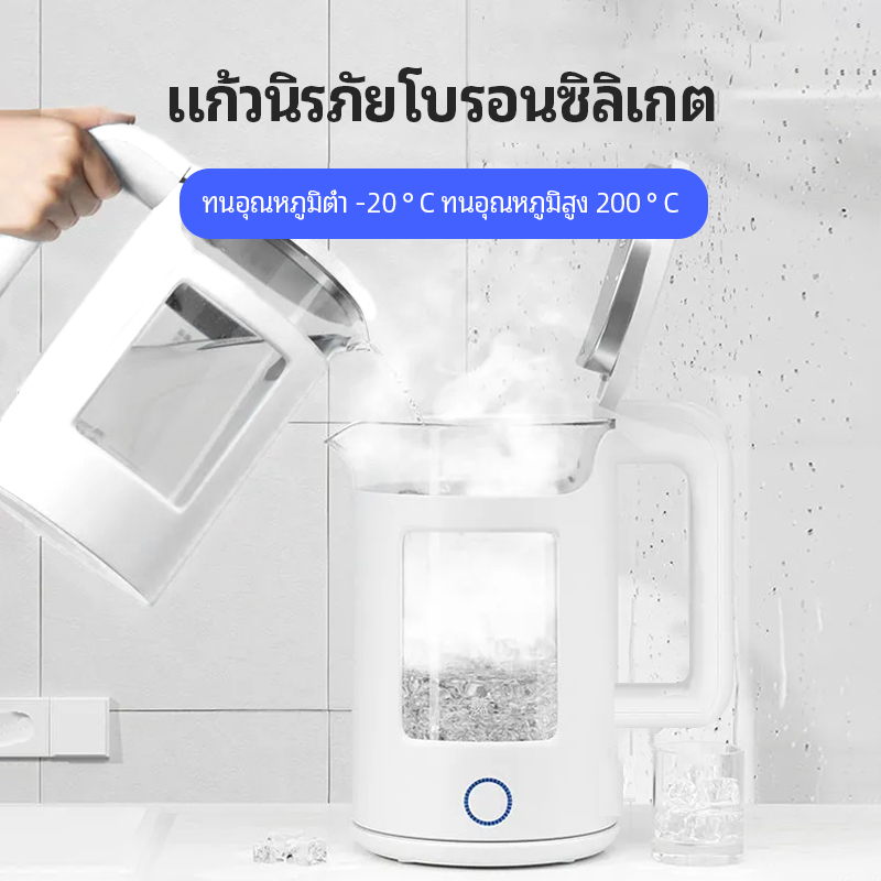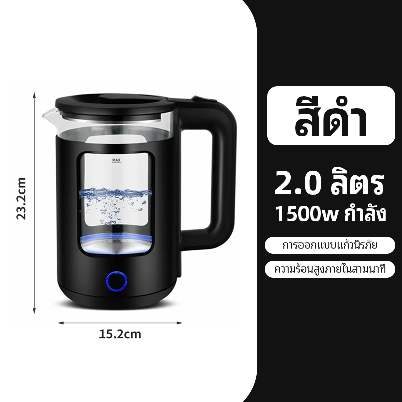 กาต้มน้ำไฟฟ้า กาชงชาไฟฟ้า จากแก้วโบรอนซิลิเกต ขนาด 2.0 ลิตร ตัดไฟอัตโนมัติเมื่อเดือด ความร้อนสูงใน 3 นาที