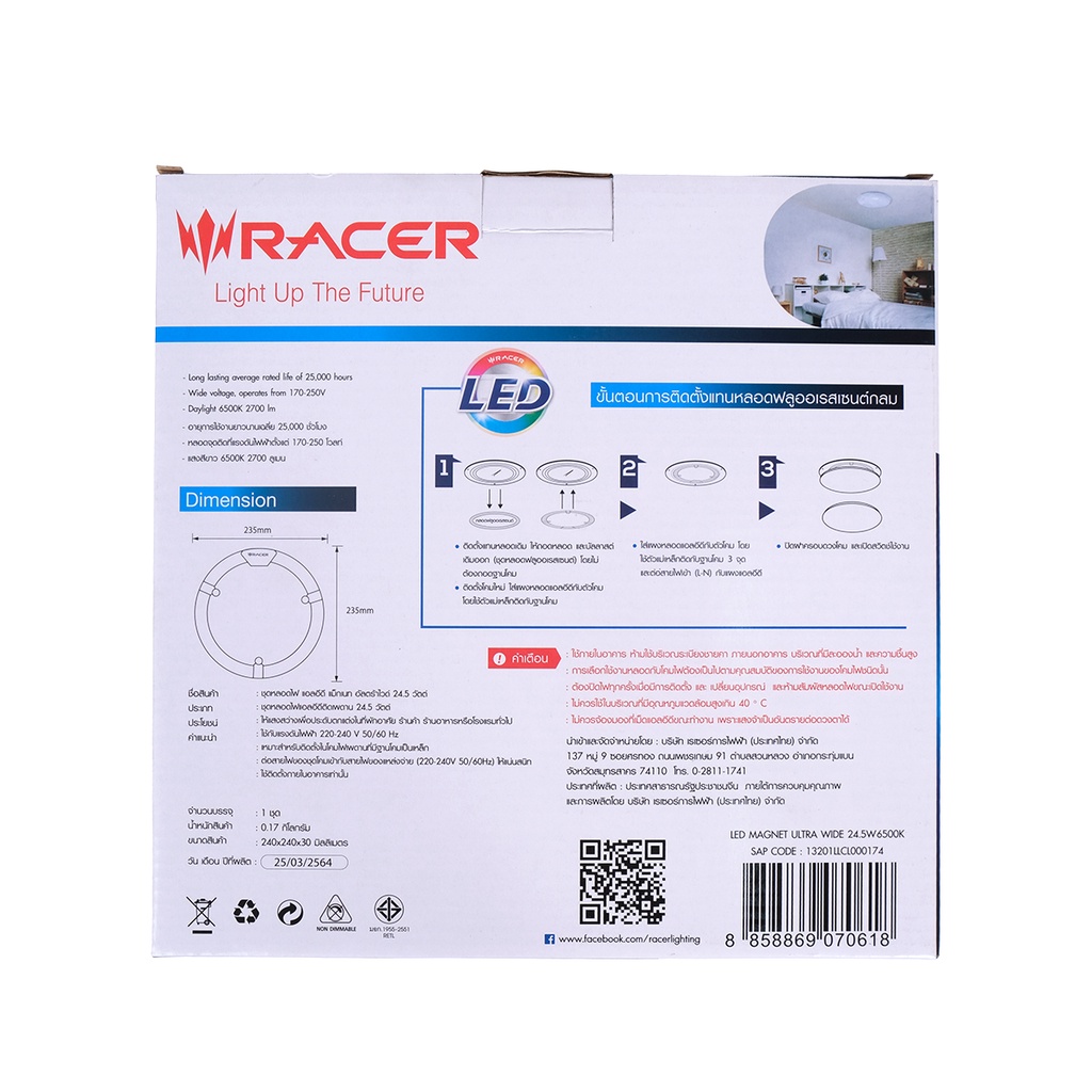 RACER แผงไฟเพดานกลมเซ็ต LED 24.5 วัตต์ รุ่น MAGNET ULTRA WIDE |ZWF|