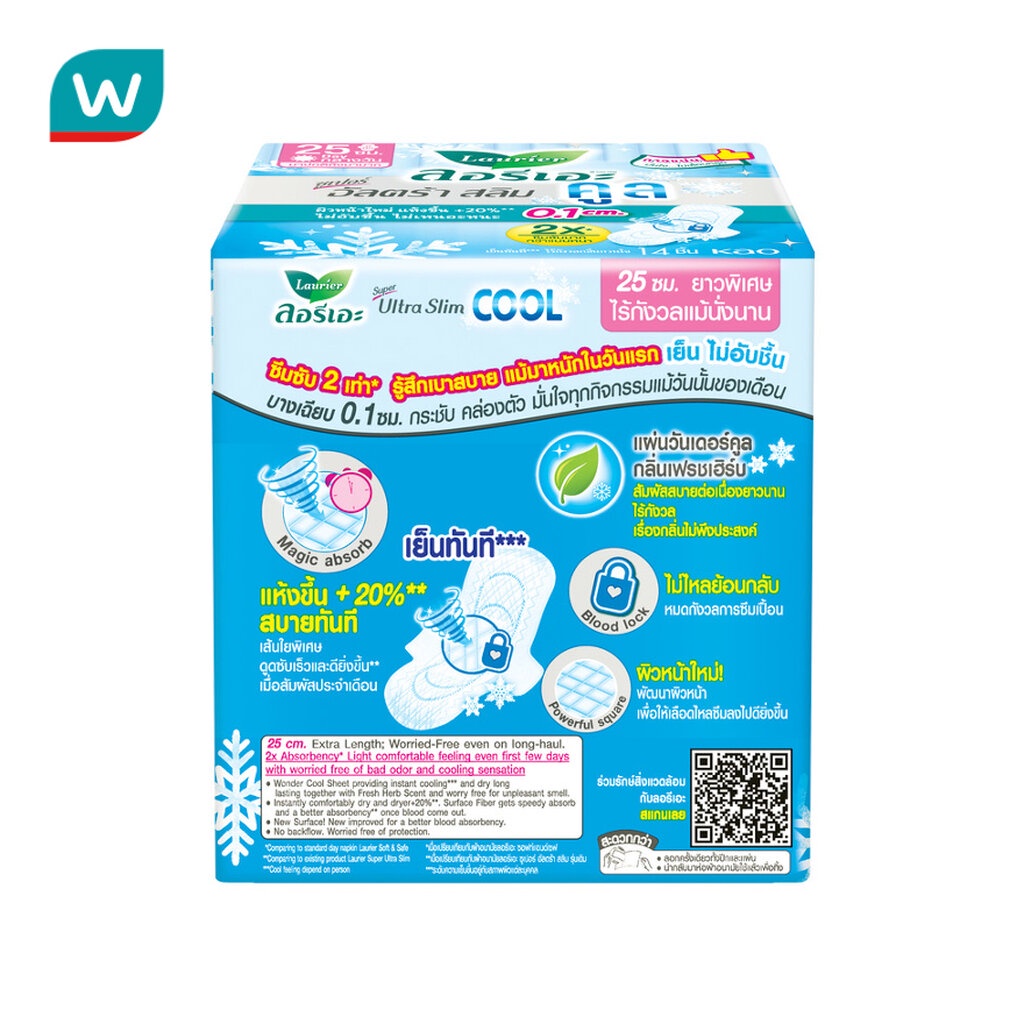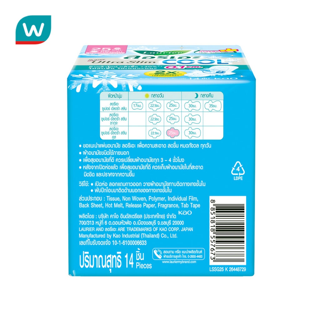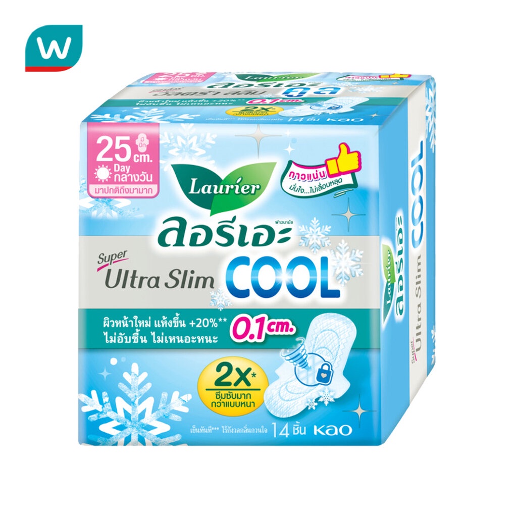 Laurier ลอริเอะ ผ้าอนามัย ซูเปอร์ อัลตร้า สลิม คูล 25 ซม.มีปีก 14 ชิ้น