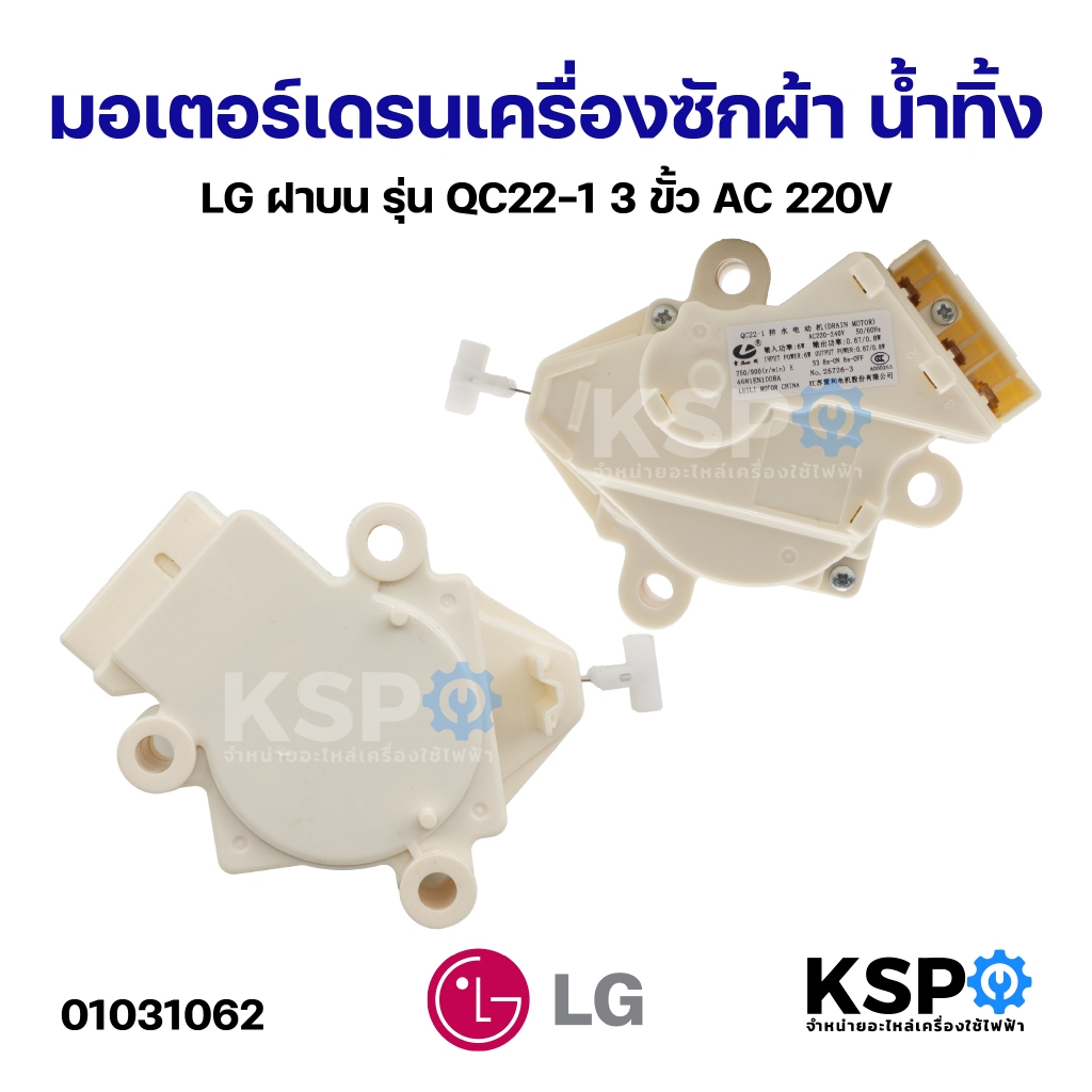 มอเตอร์เดรนเครื่องซักผ้า น้ำทิ้ง LG แอลจี ฝาบน รุ่น QC22-1 3ขั้ว AC 220V (เกรด A) อะไหล่เครื่องซักผ้า