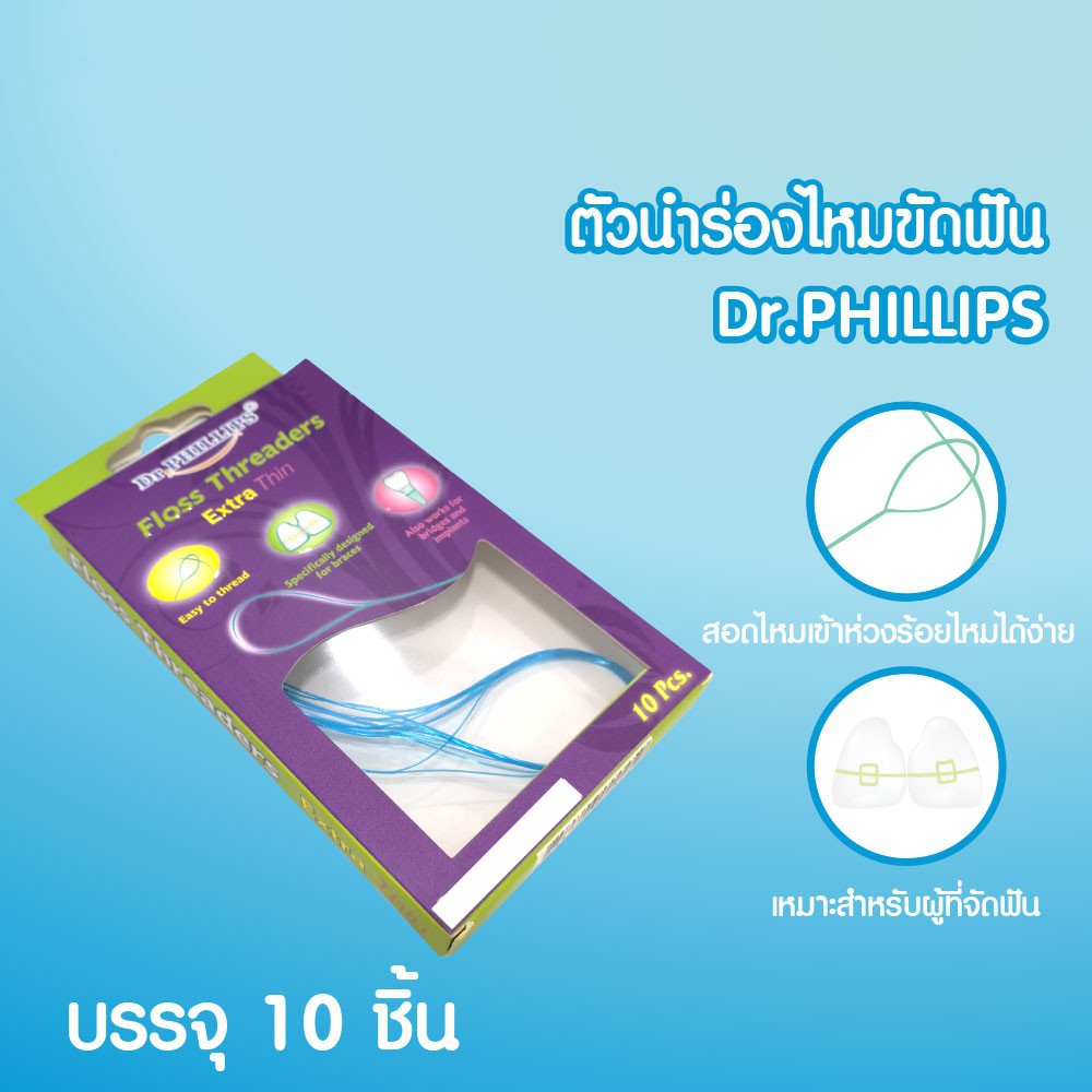 ตัวนำร่องไหม DENTAL FLOSS THEADER DR.PHILLIPS 10 ชิ้น #6003