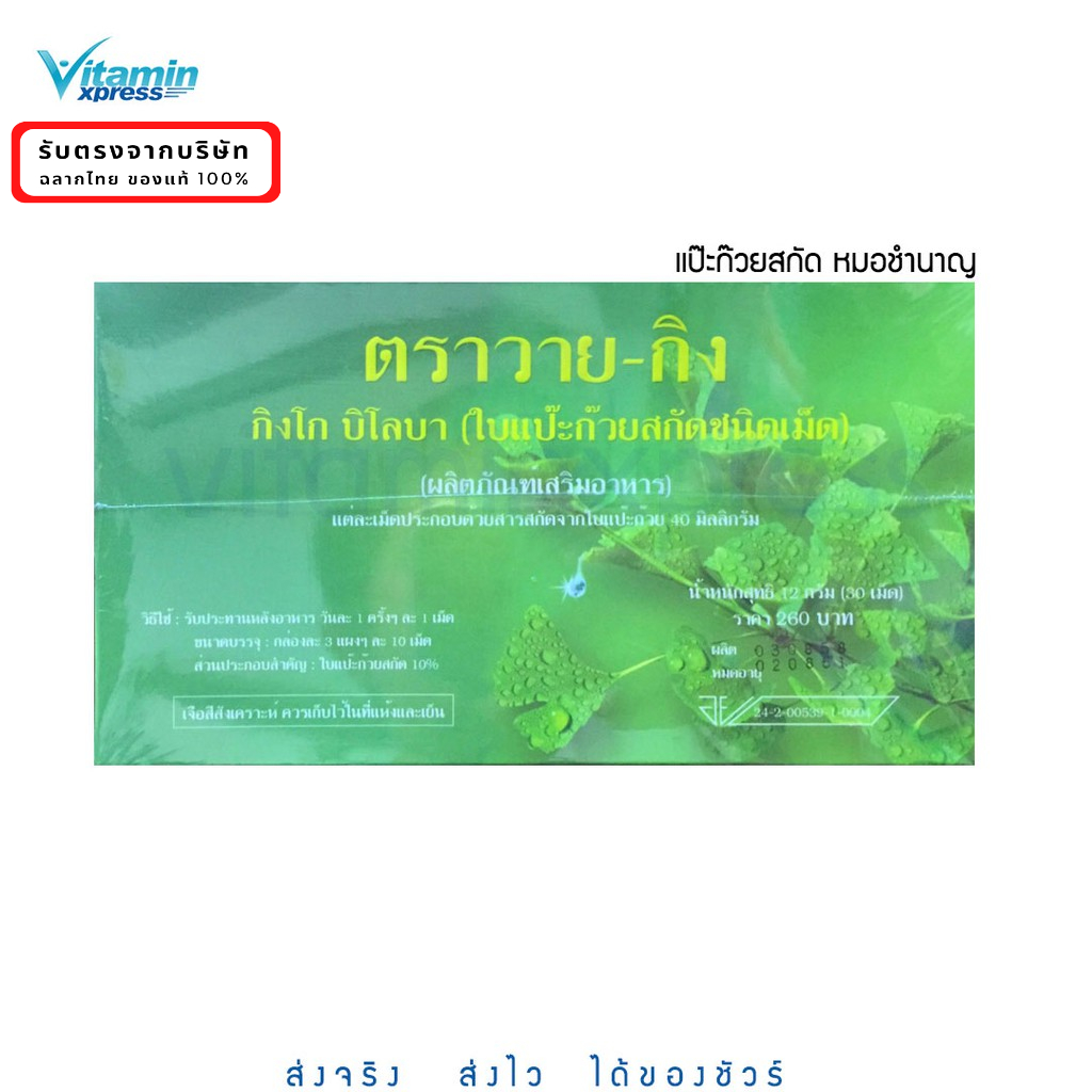 exp 07/69 ใบแป๊ะก๊วยสกัดชนิดเม็ด Y-GINK กิงโก บิโลบา ตรา วายกิง ygink หมอชำนาญ ขายดี แป๊ะก๊วย