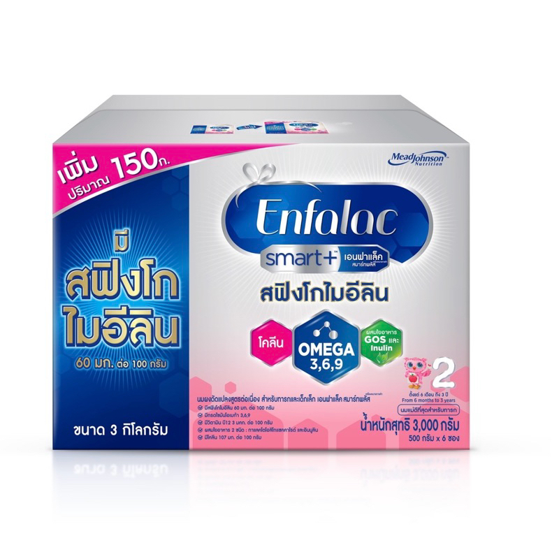Enfalac Smart+2 เอนฟาแล็ค สมาร์ทพลัส นมผง เอนฟา แล็ค สูตร 2 รสจืด ขนาด 3000 กรัม